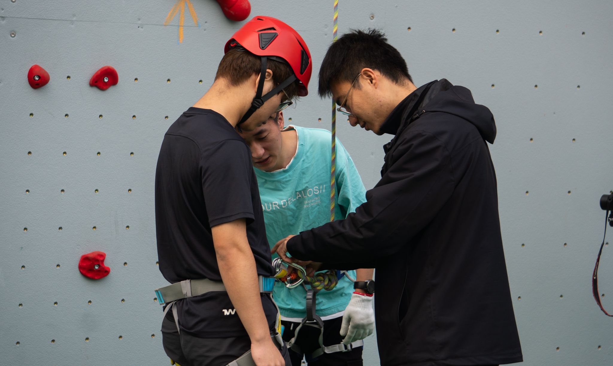 攀岩运动集竞技、健身、欣赏于一体,素有“岩壁上的芭蕾”之美誉,是一项富有挑战性、艺术性的体育项目,是智慧与力量的展现,是回归自然与超越自我的结合。开幕式结束后,在竞技体育中心老师们的悉心讲解下,选手们信心满满,跃跃欲试。但攀岩远比想象中困难许多,攀岩墙既高又陡,攀爬的过程考验的不仅是选手的体能,更是智慧与意志力的比拼。
