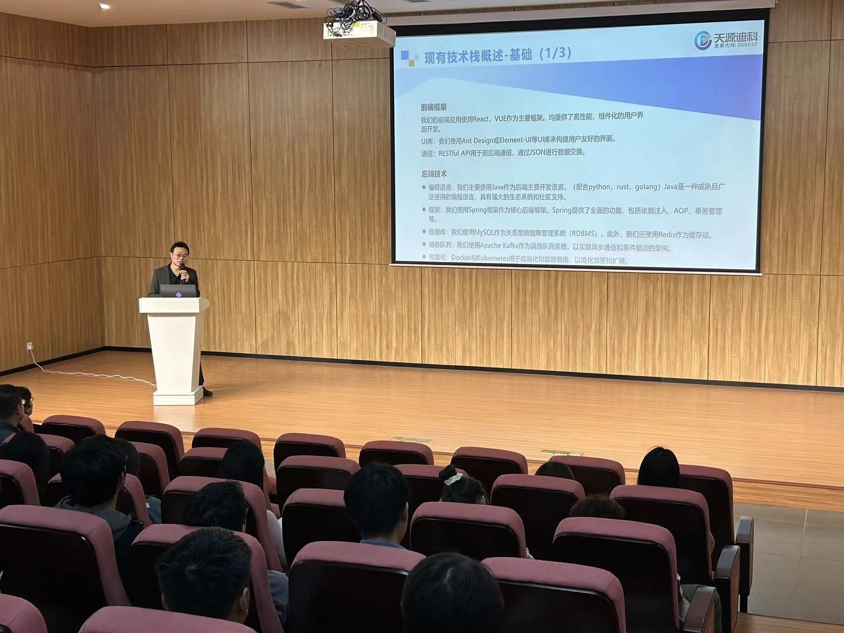 对于架构设计师的理解,何先生着重强调了在架构设计师的职业发展中,不仅需要具备扎实的技术功底,还需要具备良好的沟通能力和团队协作能力。他还鼓励学生们要勇于接受新技术的挑战,保持学习的热情和持续自我提升的动力。很多感兴趣的同学踊跃向何先生提问,何先生为同学们分析了未来技术发展的大方向,如果要入职天源迪科应该适合哪些职位以及需要具备的条件,深入解析了当前的产业形式。