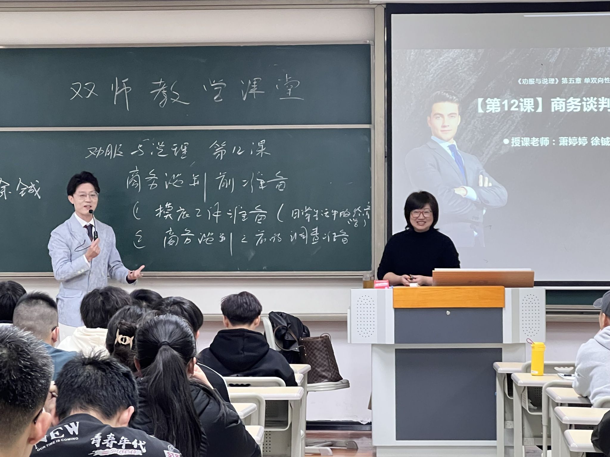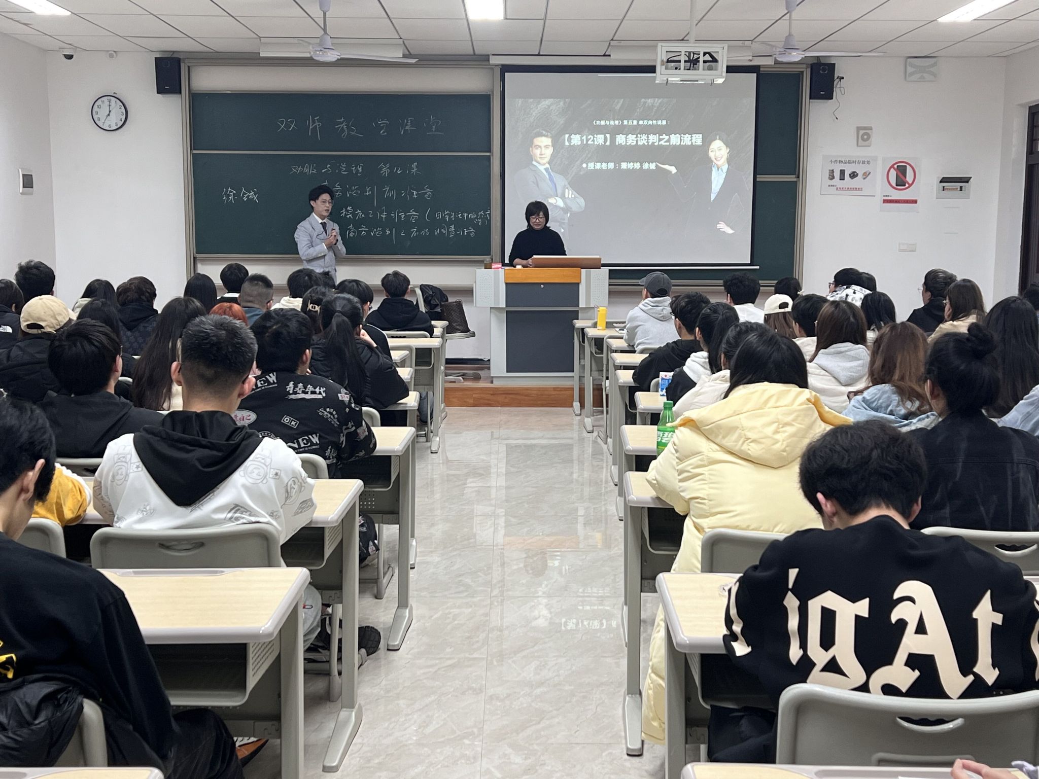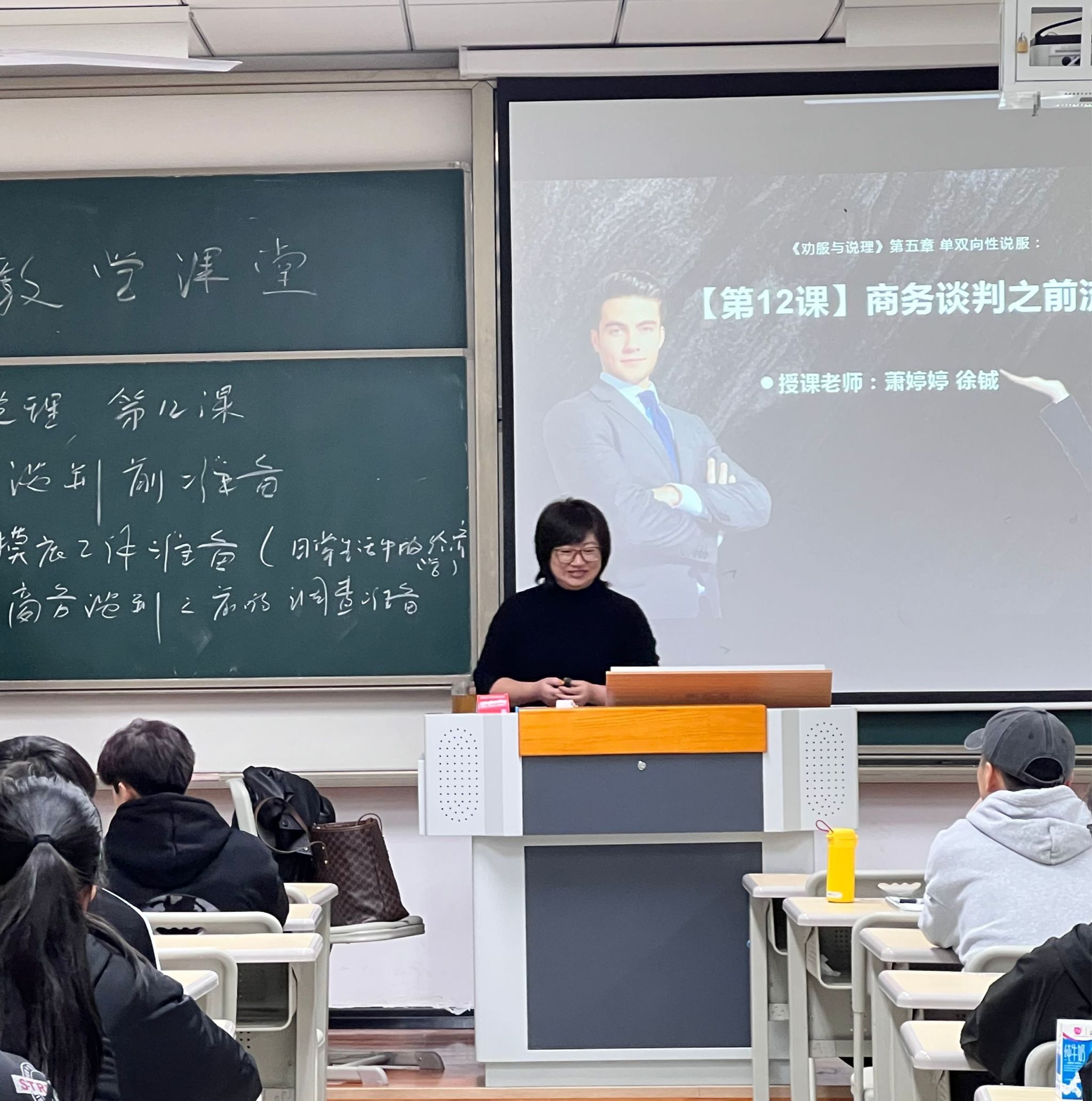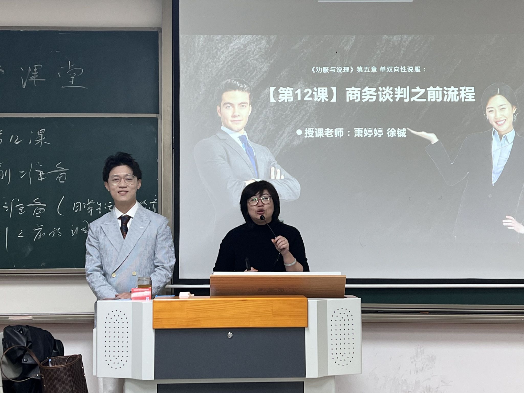 为响应学校积极开展通识教育的号召,发展学生们全方位思考的能力,培养他们在日后工作中面对商业谈判游刃有余的信心和勇气,11月23日,萧婷婷老师携手徐铖老师,在仁者楼306为同学们开展了一次有关商务谈判的别开生面的双师课堂。