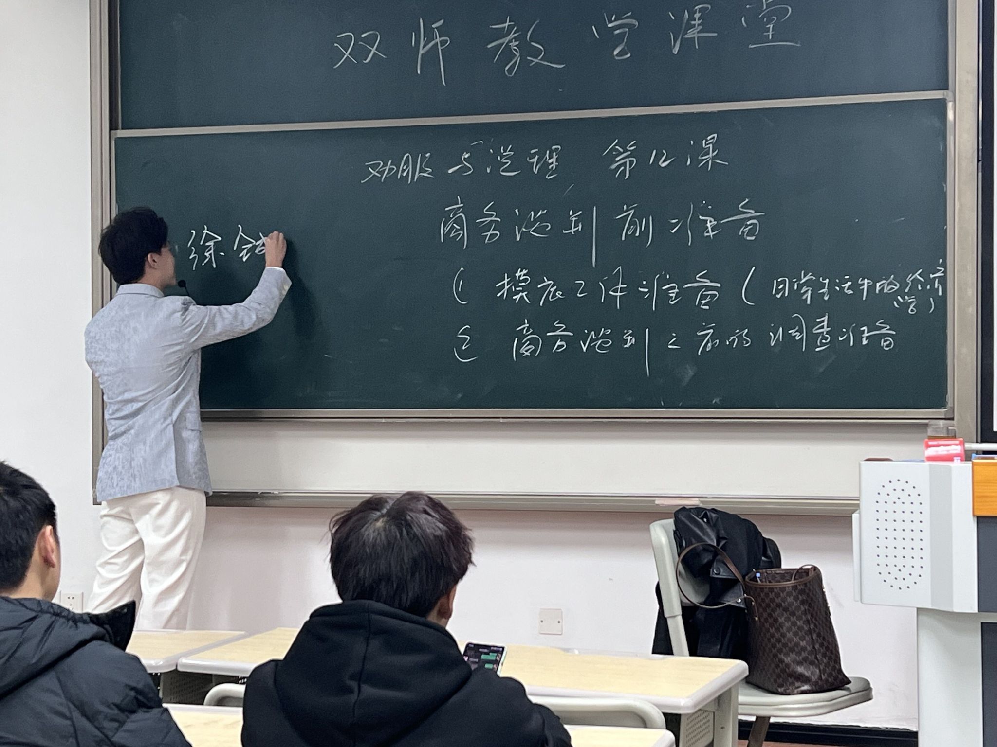 上课开始前,同学们对突然出现在教室里的新面孔感到无比的好奇,大家都在猜测着他的身份。随着上课铃声响,教室瞬间安静,萧老师邀请徐铖老师到讲台上作了一个简单的自我介绍,于是新老师的名字才被大家知晓。