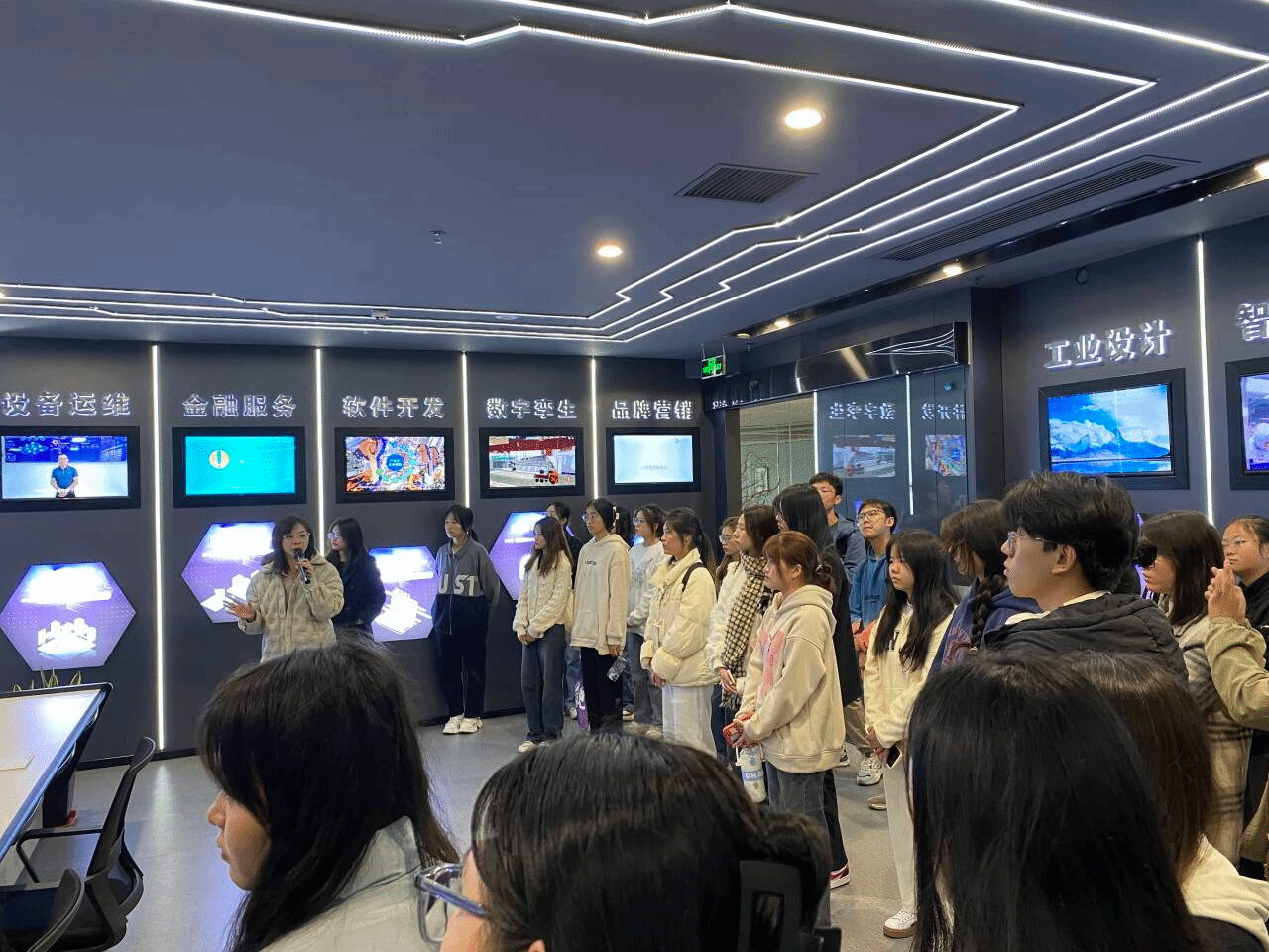 在重庆龙智造科技有限公司的参观过程中,同学们对企业的工作环境、工作氛围和计算机设备有了更深入的了解。在各种先进的制造设备、计算机系统面前纷纷驻足停留,仔细观察和学习。在亲眼目睹了大数据技术的实际应用,同时,同学们学习了大数据在解决问题和提高工作效率方面的巨大潜力,并与公司的技术工作人员进行了深入的交流,细致深入地了解了在实际工作中所需要掌握的技能和知识。
