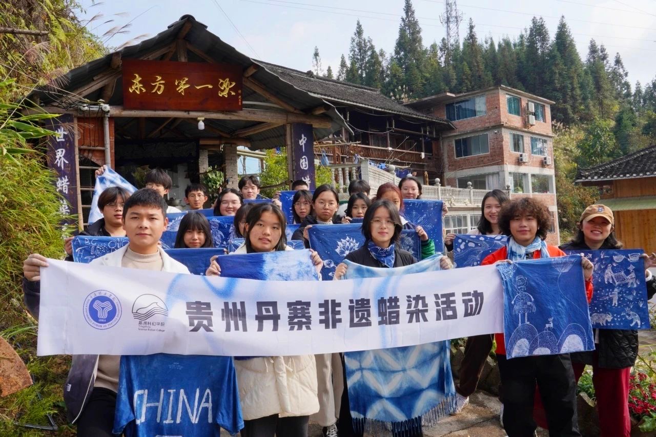 为了更好地贯彻重庆移通学院的办学理念,11月24日至26日,由重庆移通学院主办、瀛洲科幻学院承办的“中国非遗文化系列工坊”成功举行。此次活动由瀛洲科幻学院的王琎、袁理、刘佳莹、李春阳四位老师带领,与来自全校不同专业的二十名学生组成的工坊团队,在贵州省黔东南苗族侗族自治区丹寨县排莫村,素有“中国蜡染第一乡”之称,完成了为期两天的“蜡染”工坊。本次活动旨在培养同学们对中国传统文化中非遗项目的深入理解,同时将本校通识课程《科幻与想象力》延伸到文化现场,使同学们在获得非遗文化零距离接触的同时,进行一次在地文化的想象力实践。
