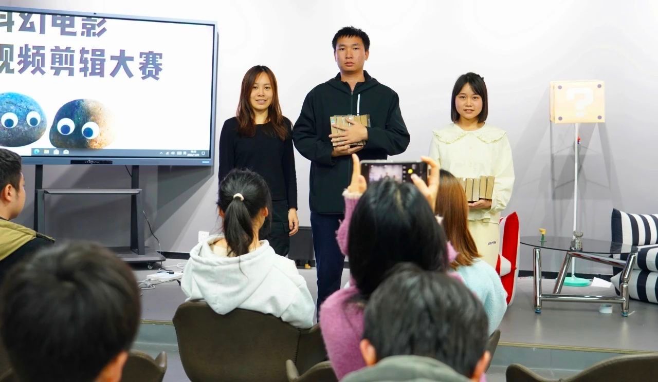 接下来的问答环节进一步增加了观众的互动体验。主持人赵守伟老师提出问题,同学们积极回应,对影片内容和剪辑技巧进行了深入讨论。参与最积极的同学还获得了精美的小礼品,增加了活动的趣味性。