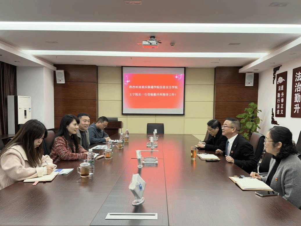 为深入推进教育部“访企拓岗促就业”专项行动,加强校企合作,保持教学与社会实践深度融合,实现优质教育资源共享共建,加快人才培养模式,实现校企双方共赢。11月30日,信息安全学院院长王宁,学工办主任邹建、物联网教研室主任郑慧娟及信息安全教研室主任杨宏志等一行人前往重庆勤升律师事务所开展访企拓岗促就业专项行动,勤升事务所主任王琴、副主任严红等领导热情接待了我校一行人。