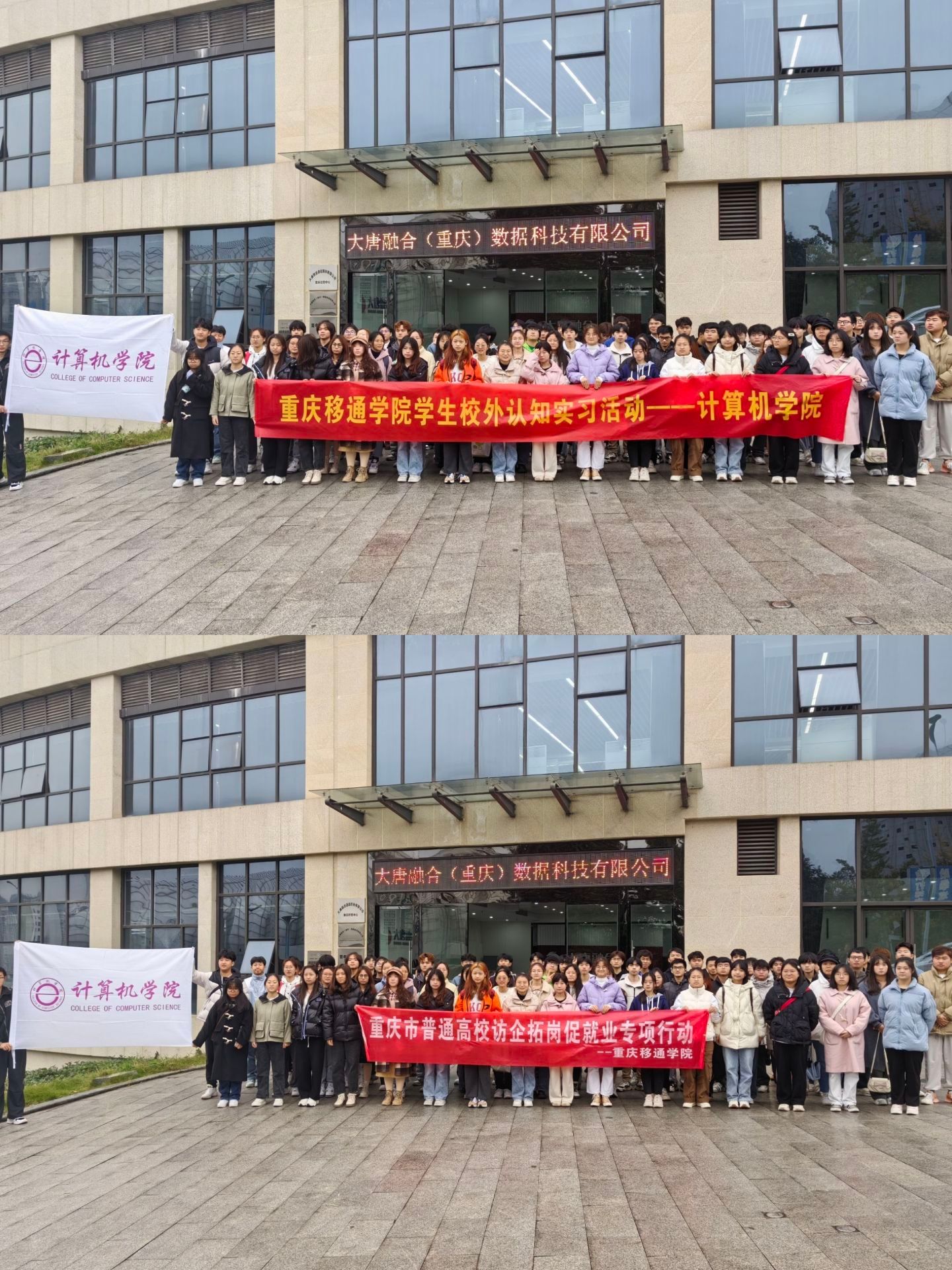 为了让学生们切身感受真实的职场环境,并对毕业后的工作范围及工作环境有更具体的了解,计算机学院教学副院长林泽金、学工副院长周俊、教研室主任卢星儒、以及辅导员丁滢、黄渝真老师共同带领80名计算机学院学生前往大唐融合数据科技有限公司綦江区分公司进行认知实习。