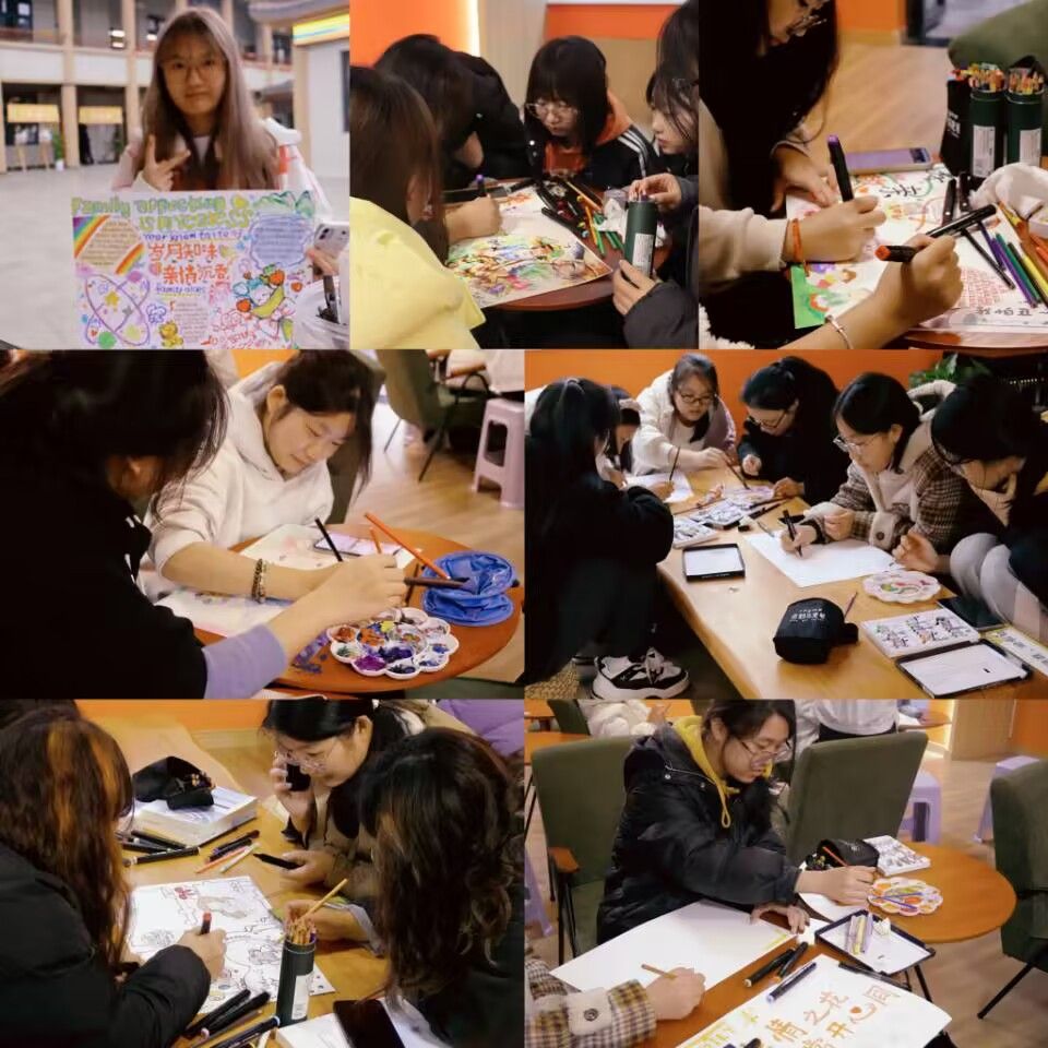 心理健康教育与文艺体育等活动结合,是强化大学生积极情感和健康心态的重要途径。“亲密关系”为主题的“11.25”心理健康月系列活动之二“感恩之心,常开心间”第三届心理手抄报大赛于11月15日在古剑书院中庭举行。心理手抄报大赛以“亲情”为主题,通过绘画的形式使参与者对绘画内容进行构思,产生自由联想来稳定和调节情绪,在感受“爱与被爱”的过程中激起同学们与家人间情感领域的交织,在充实的实践活动中,加强“小家”与“大家”的情感联结。