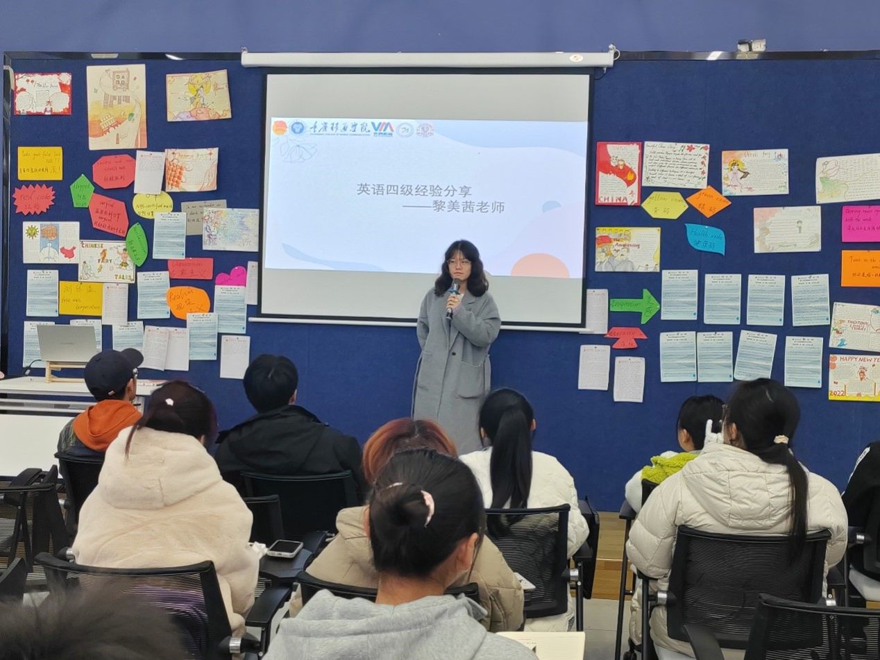 英语四、六级考试是教育部主管的一项全国性英语测试,旨在提高大学生的职场竞争力,培养生存技能,充实学习生活,在2023年末全国即将迎来又一次英语四级考试。为了缓解同学们备考的压力,增强同学们学习英语的自信心,促进同学们加强心理素质建设,“精英之声”语言社于12月1日14:30—15:30在綦河书院二号楼D区两句·演讲培训室举办了一场英语四级的经验分享会,本次分享会特地邀请了远景学院的黎美茜老师进行现场指导和讲解,目的是帮助大家掌握学习方法,提升学习效率,从而更好地迎接即将到来的英语四级考试。