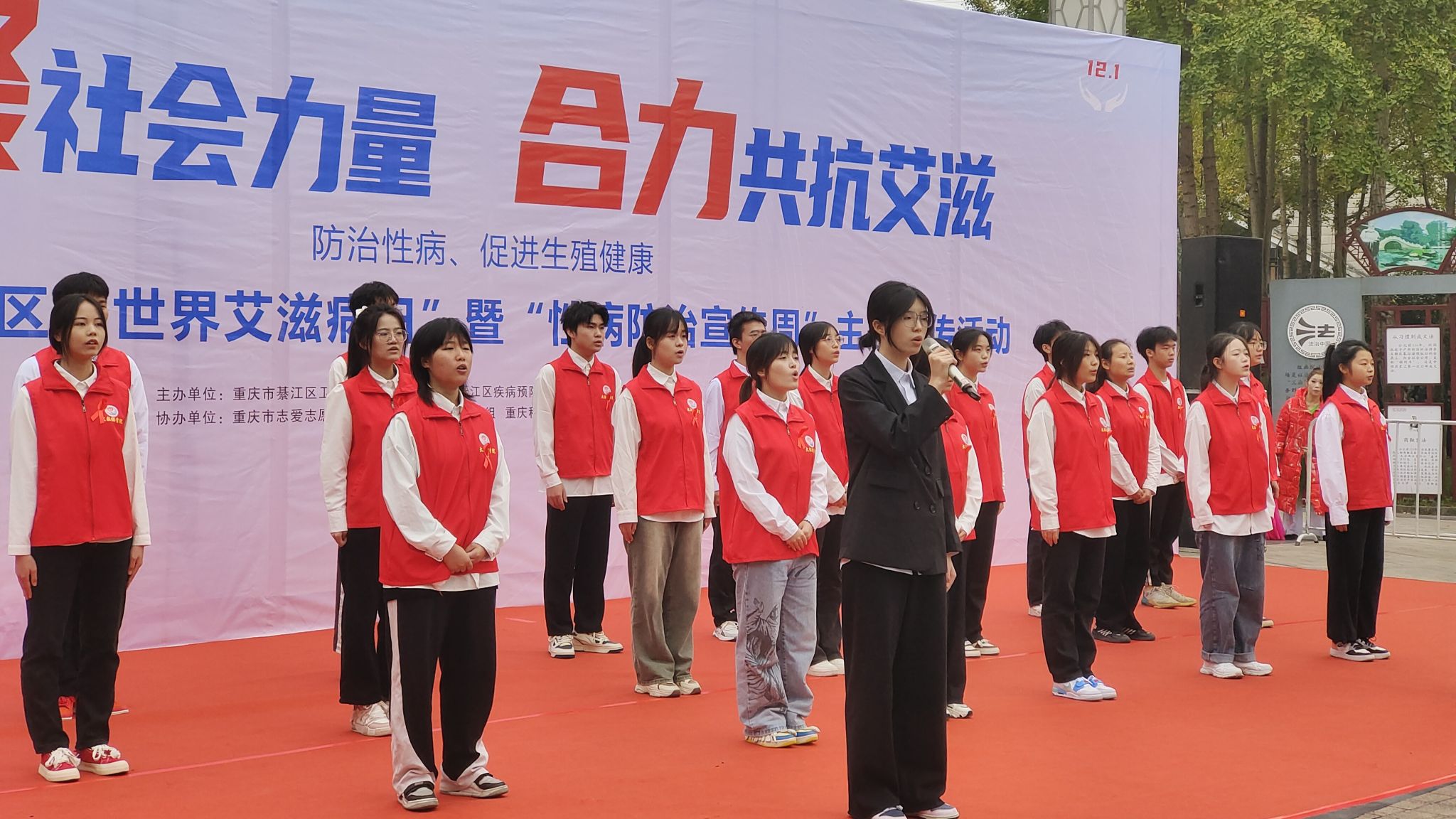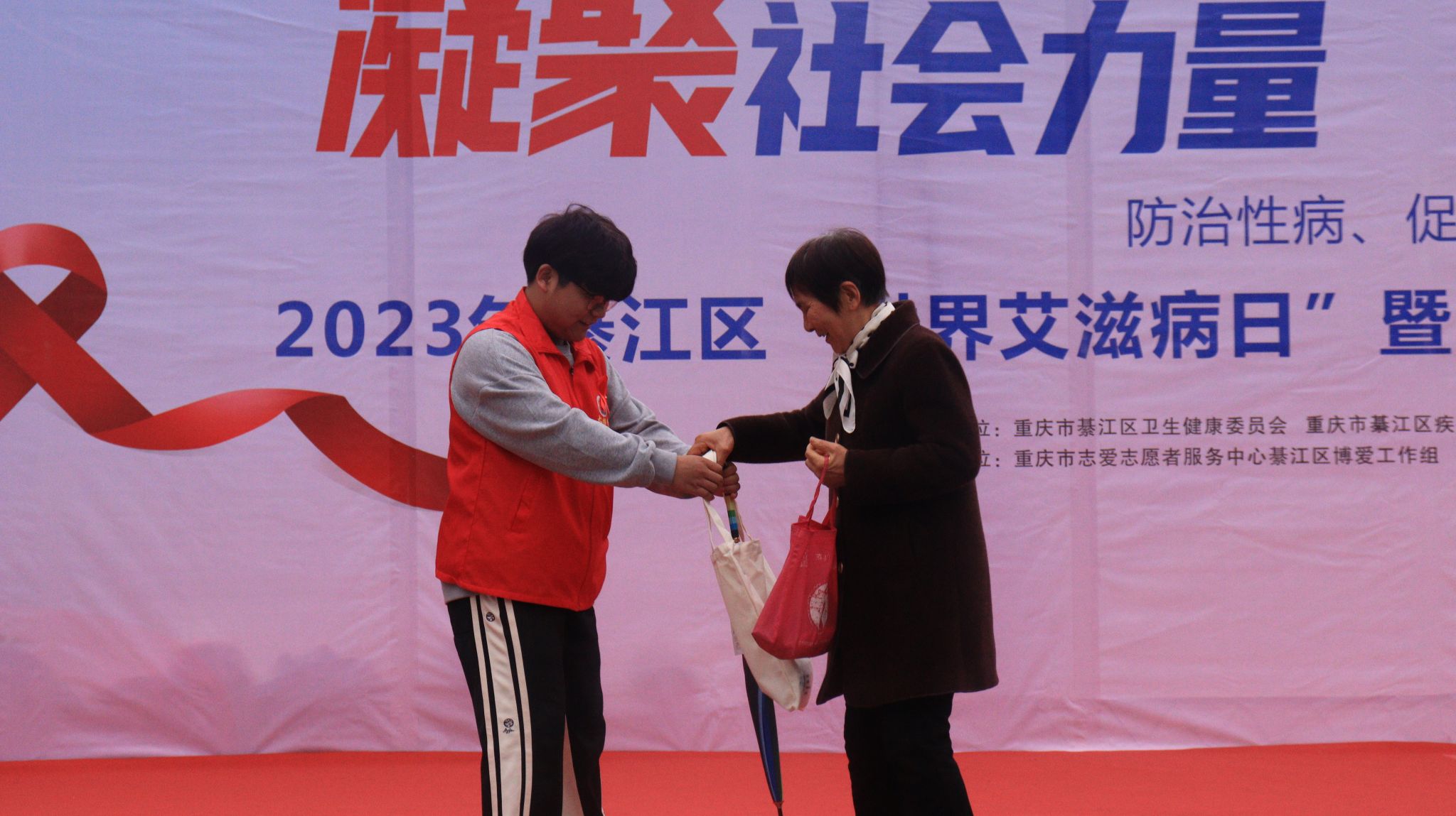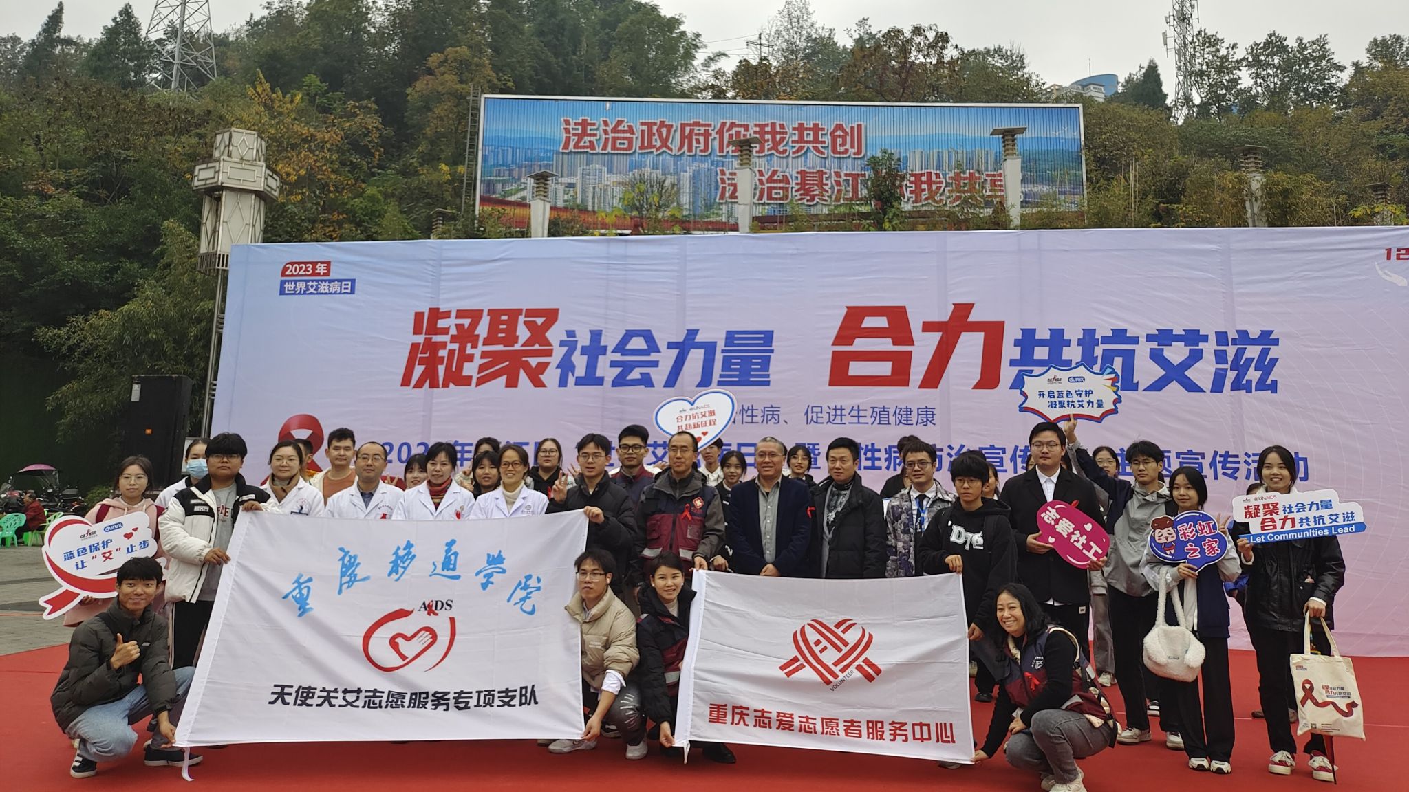 人人参与防艾行动,家家拥有幸福家园。为扎实宣传普及艾滋病防治相关知识,更好地凝聚社会力量,彰显移通学子志愿服务力量,11月30日上午九点,由重庆市綦江区卫生健康委员会、重庆市綦江区疾病预防控制中心、重庆市綦江区健教所主办,重庆市志爱志愿者服务中心綦江区博爱工作组、天使关“艾”志愿服务专项支队协办的“凝聚社会力量 合力共抗艾滋”2023年艾滋病主题宣传日活动在綦江区版画广场拉开帷幕,两小时的艾滋病防治宣传受益人数达800余人次。