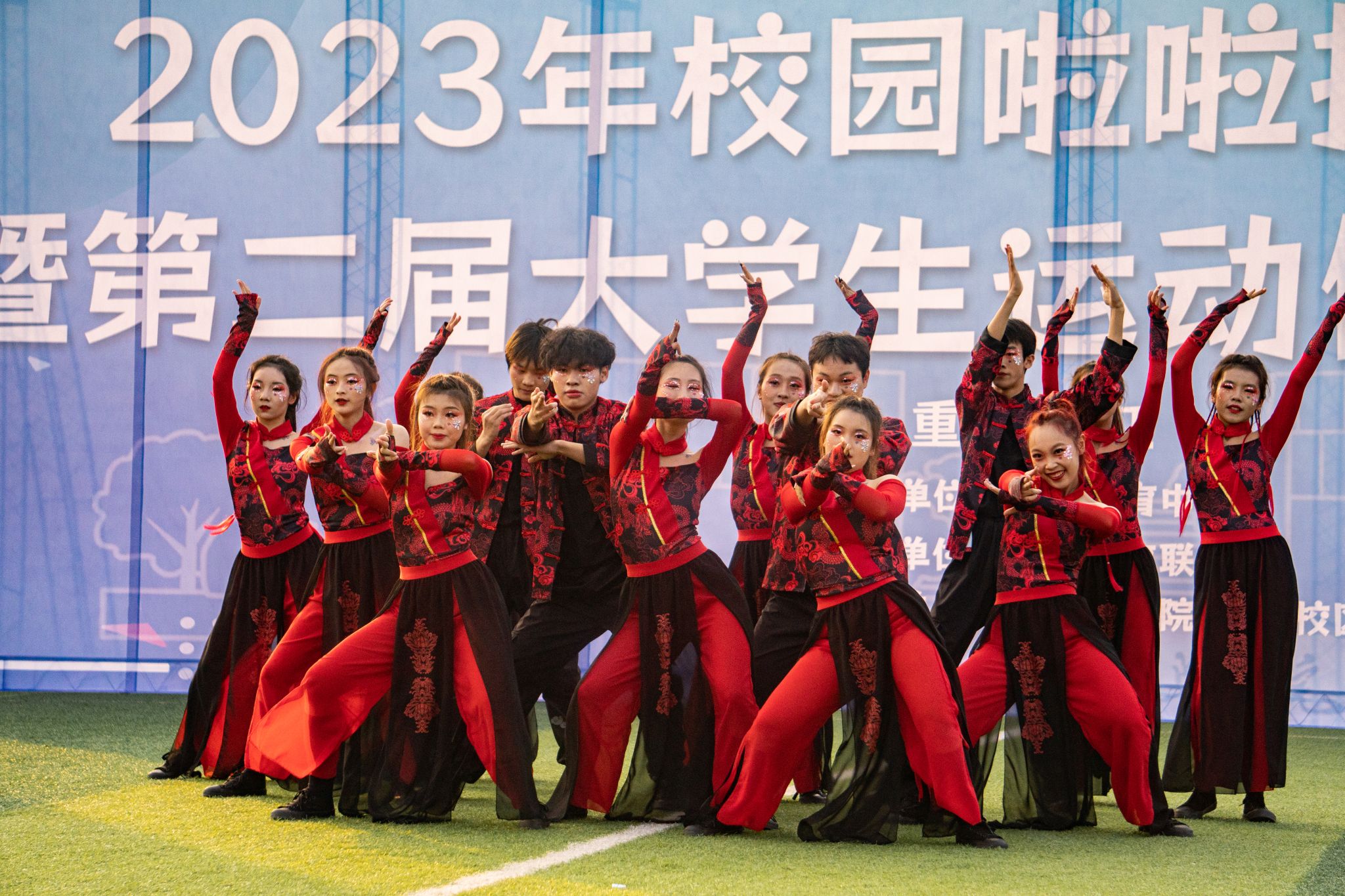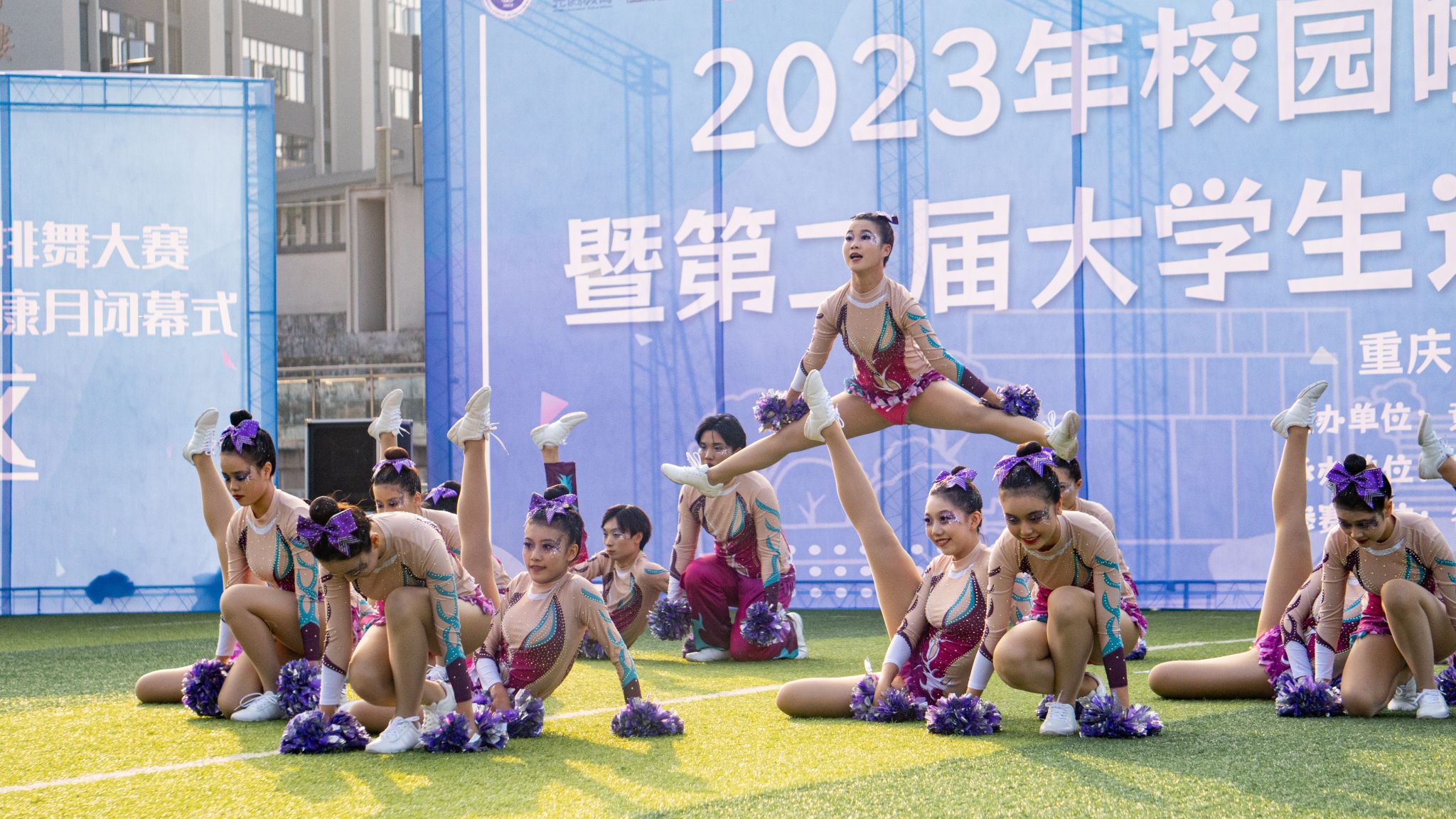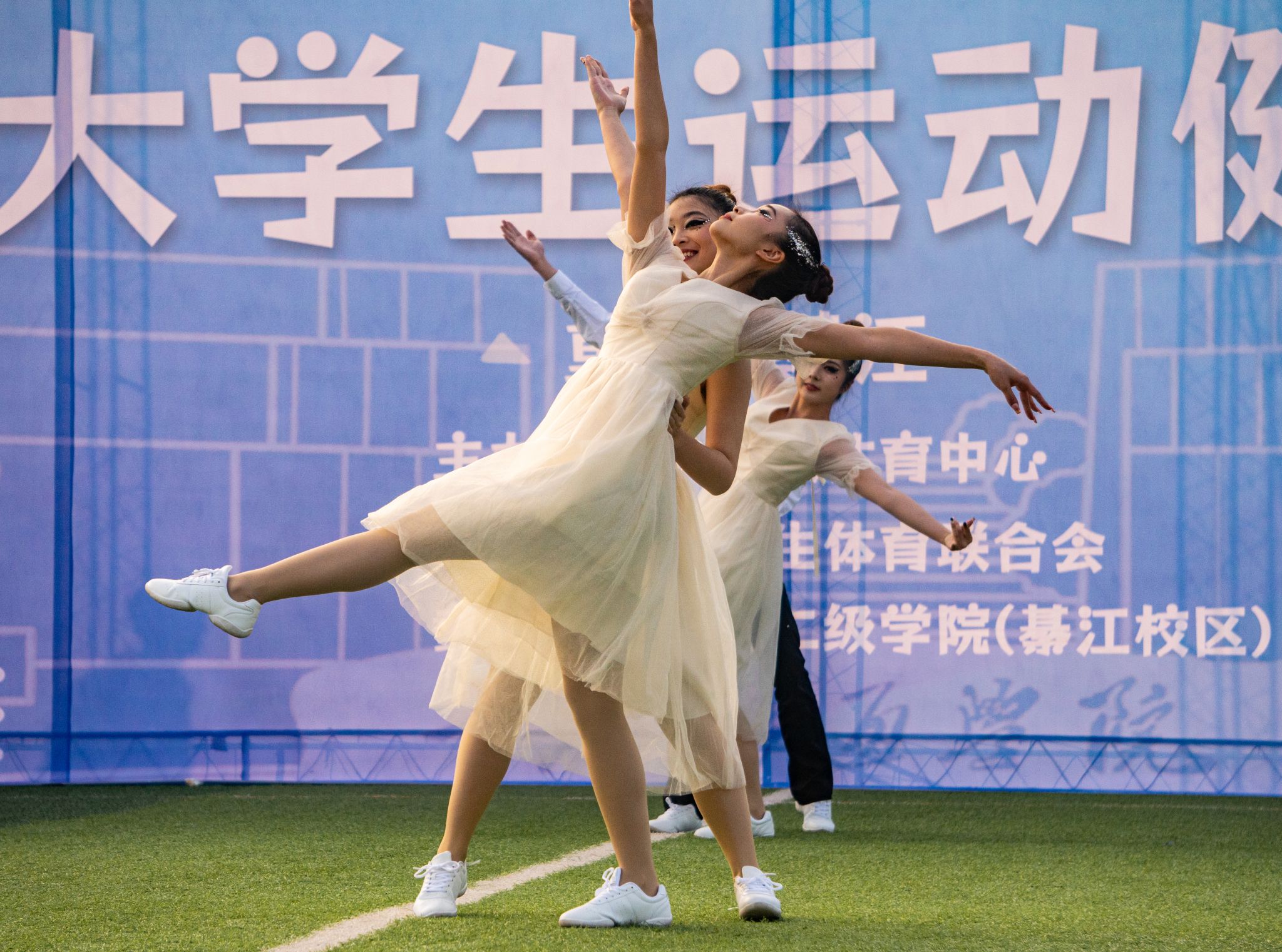 旭日暖阳下,青春的色彩在绿茵地尽数绽放,无数生命的活力汇聚在一起,舞出青春的力量,跳出青春的热血。轻歌曼舞像燕子伏巢,疾飞高翔仿佛鹊鸟夜惊,闲婉柔靡,体轻如风,妙态绝伦,一支支编舞志在高山表现出巍峨之志,而又意在流水舞出荡荡之情。