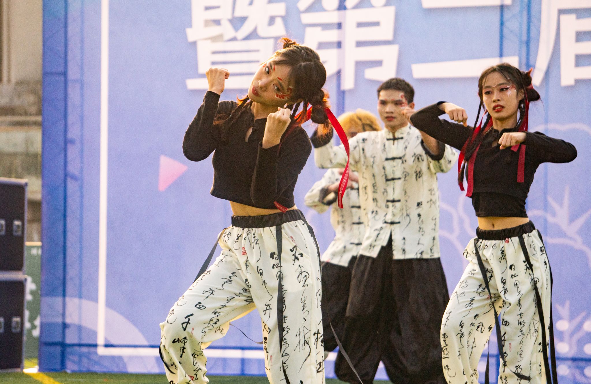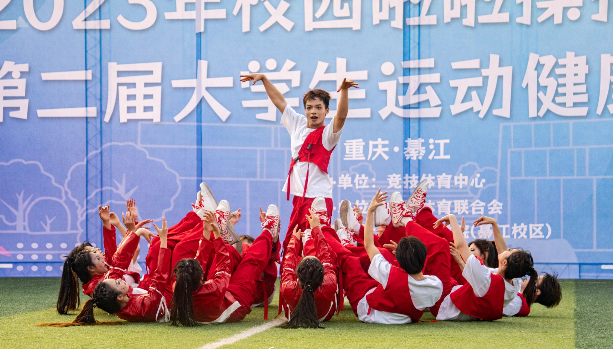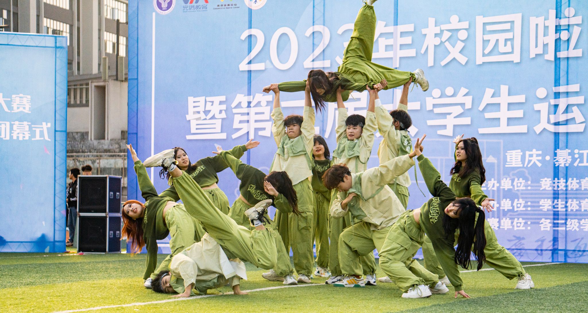 旭日暖阳下,青春的色彩在绿茵地尽数绽放,无数生命的活力汇聚在一起,舞出青春的力量,跳出青春的热血。轻歌曼舞像燕子伏巢,疾飞高翔仿佛鹊鸟夜惊,闲婉柔靡,体轻如风,妙态绝伦,一支支编舞志在高山表现出巍峨之志,而又意在流水舞出荡荡之情。