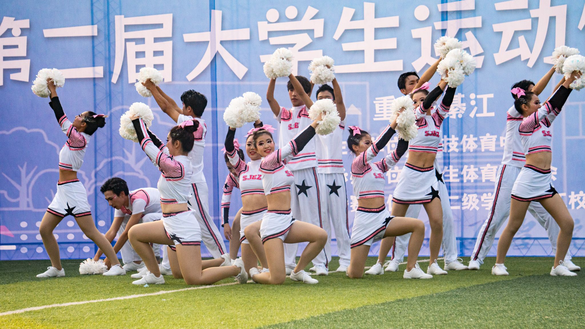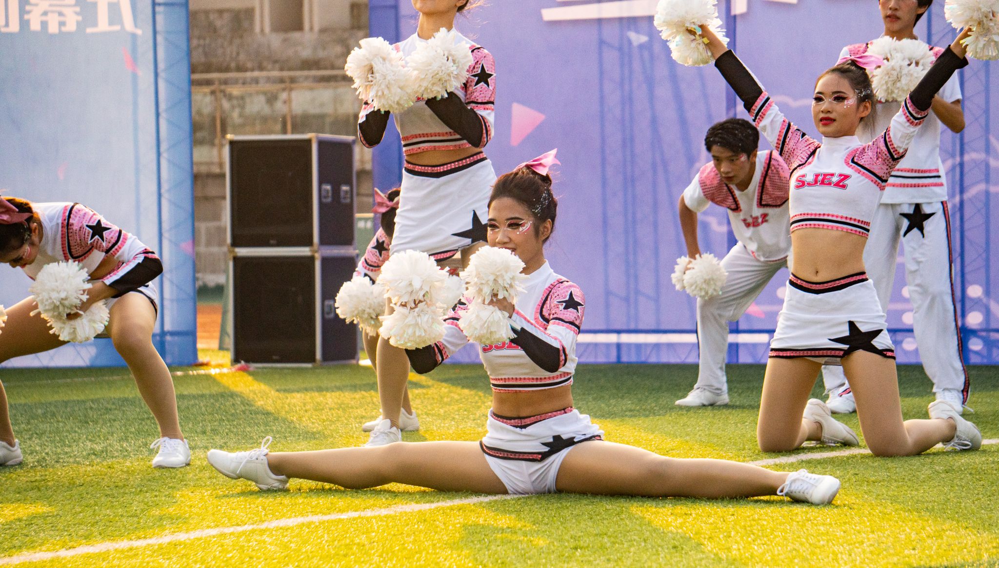 每挥动的一次花球,就闪现出一簇亮光,每一点亮光共同汇聚出选手们的光芒。台上是华丽的舞步和茵茵笑脸,台下是超高音浪的呼喊和应援。在轻快的音乐中,灿烂的笑容、优美的身姿和默契的配合,再加上高难度的动作,这充满青春活力的舞姿给观众们带来了视觉上的冲击与享受,赢得了全场的尖叫,所有的努力在这一刻得到了答案。
