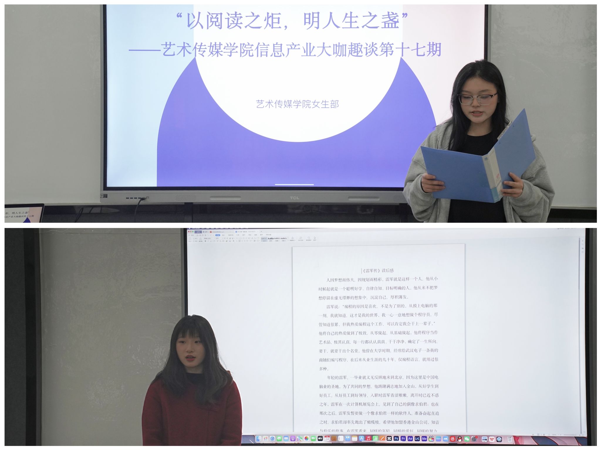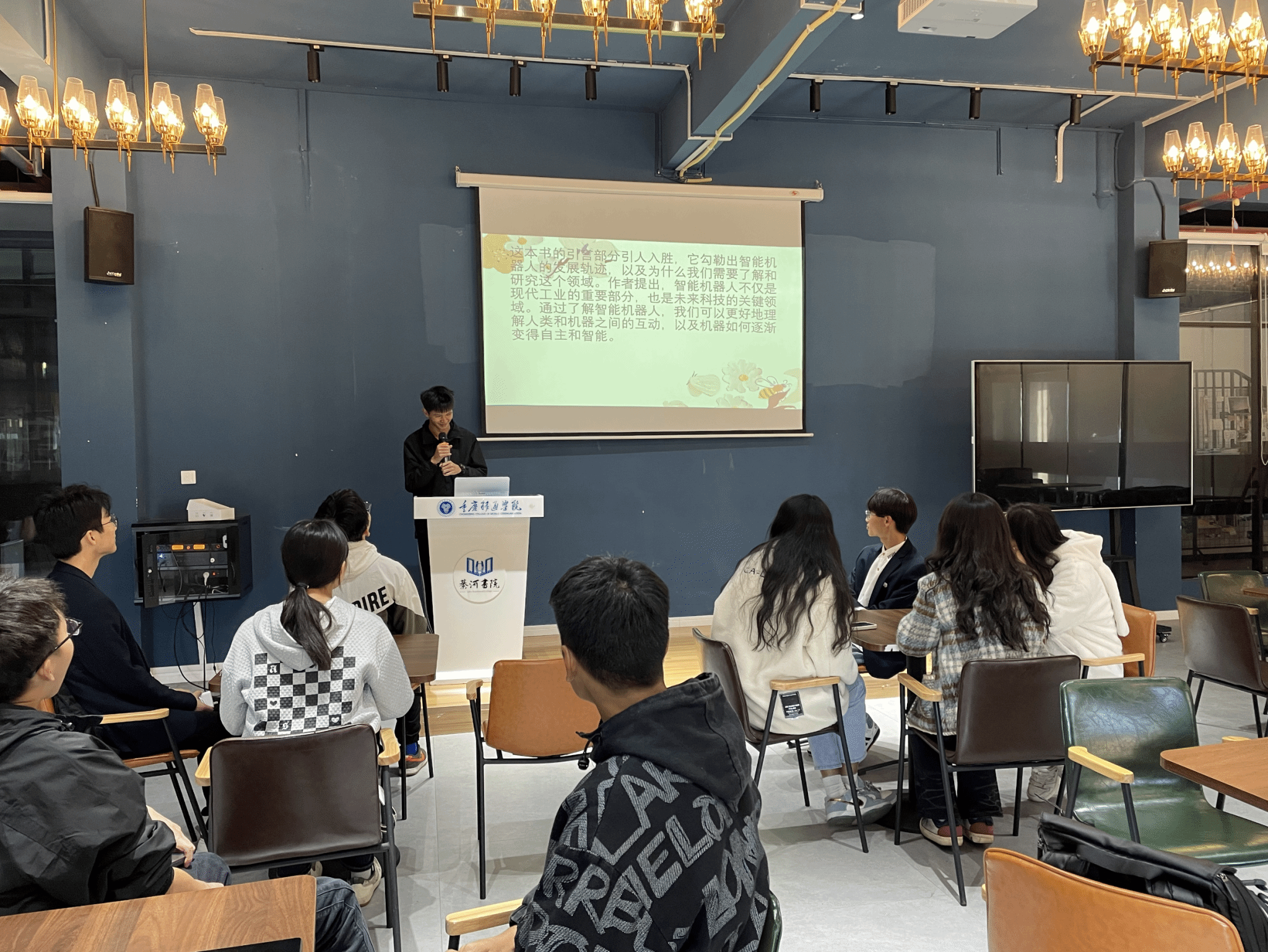 艺术传媒学院(合川校区)人类的文明能够薪火相传离不开阅读的力量,离不开千百年来我们对于知识的崇尚。艺术传媒学院开展“以阅读之炬,明人生之盏”为主题的大咖阅读活动,以宣讲会的形式让同学们明白阅读的重要性,在环境的督促下能够自觉形成阅读的习惯,与大咖共度大学时光。