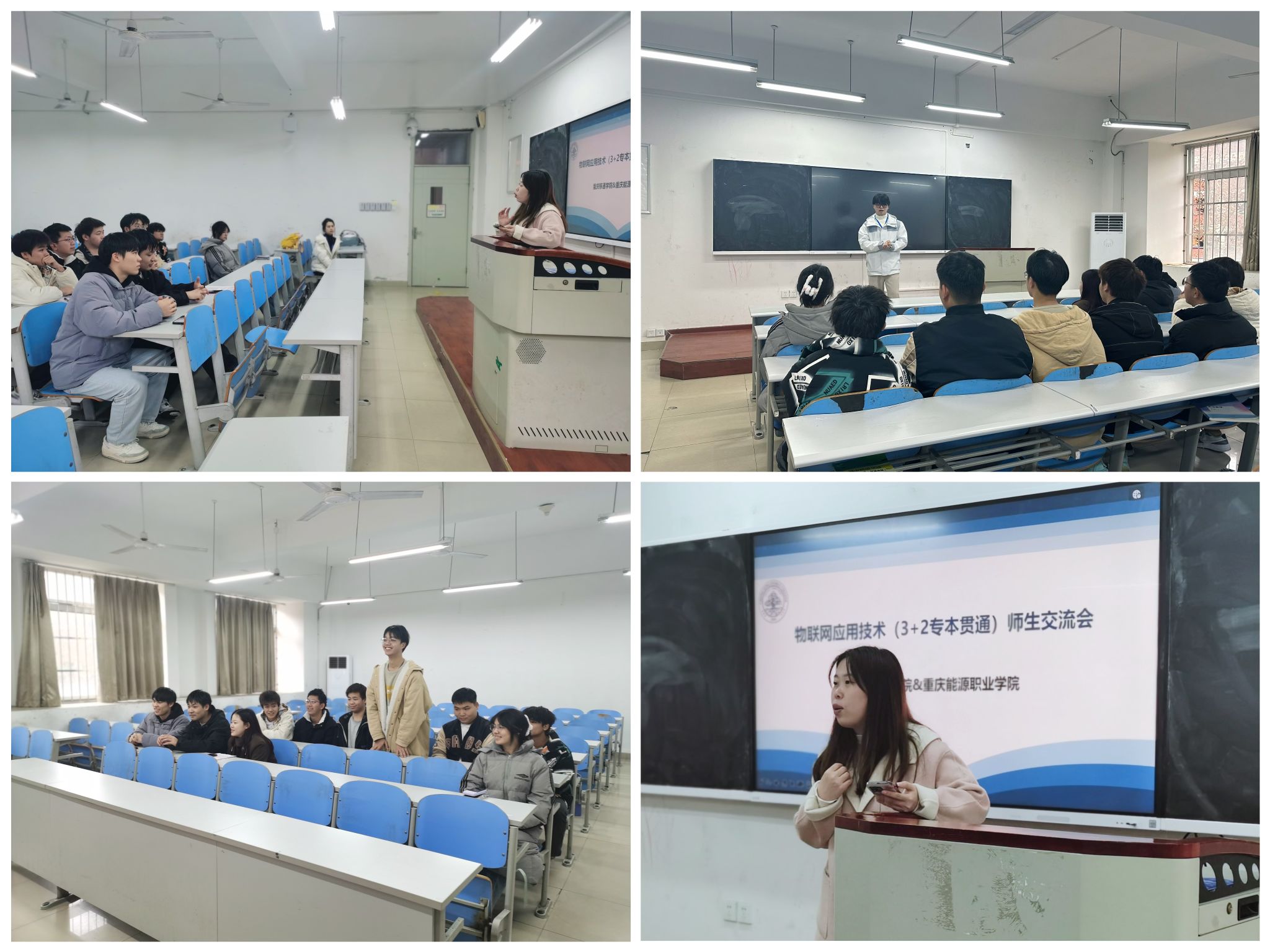 考试结束后,应重庆能源职业学院物联网技术专业负责人刘云老师的邀请,我校三位教师与重庆能源职业学院物联网技术专业的学生代表,开展了师生交流会。郑慧娟主任向学生介绍了学校“四位一体双院制”的人才培养模式和丰富的办学成果,同时解答了同学们关于奖助体系、社团活动、专业课程体系、就业等问题,与同学们深度交流了他们感兴趣的内容。徐国栋老师为同学们详细介绍了学校的全生异科导师制的意义和作用。周让老师在交流会上提到,我校拥有丰富多彩的书院生活,有充足的舞台让同学们来到移通尽情展示自我。通过交流活动的开展,帮助重庆能源职业学院的学生们更好地了解移通,也让大家对即将来到移通校园生活充满了期待。