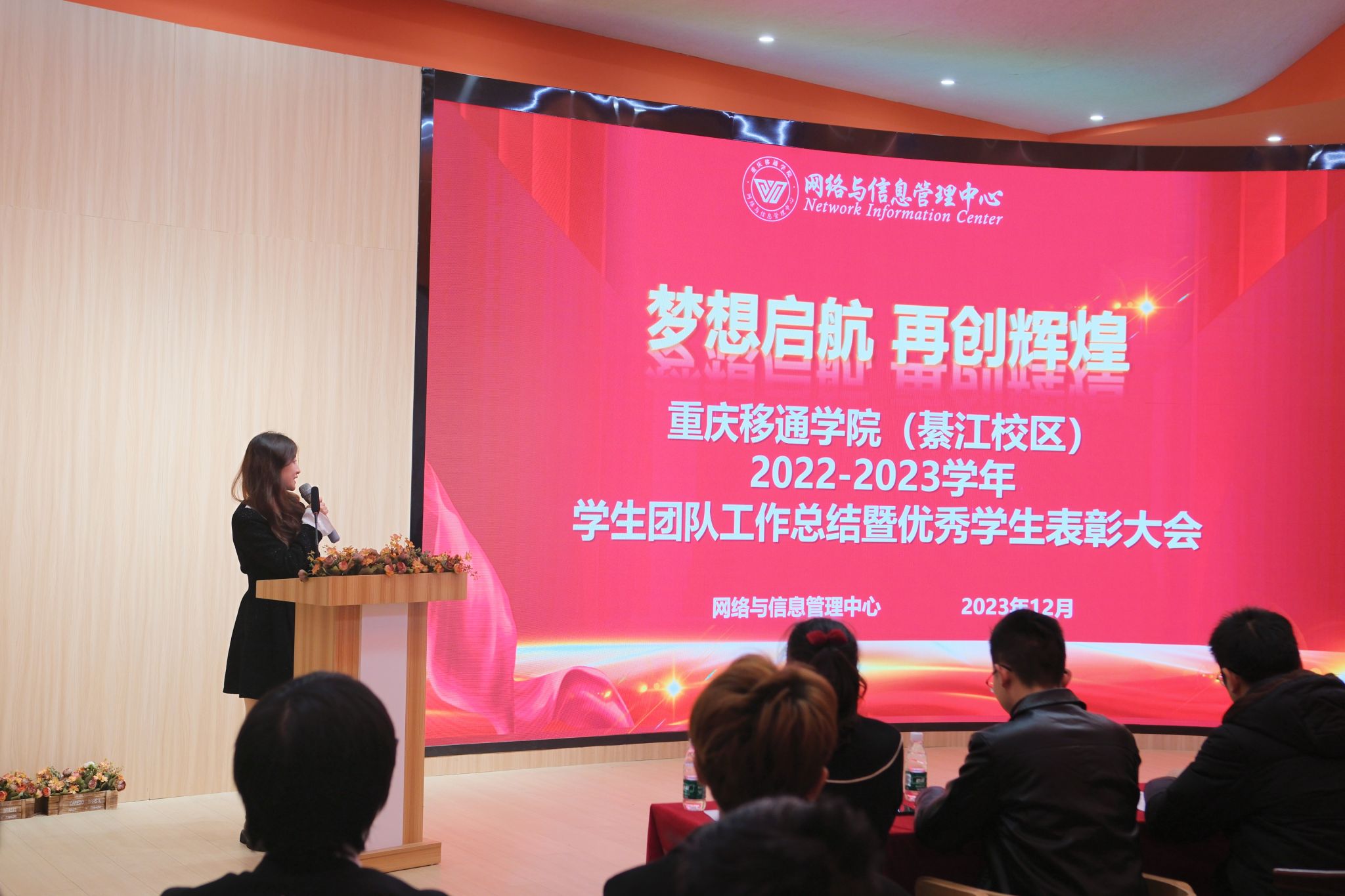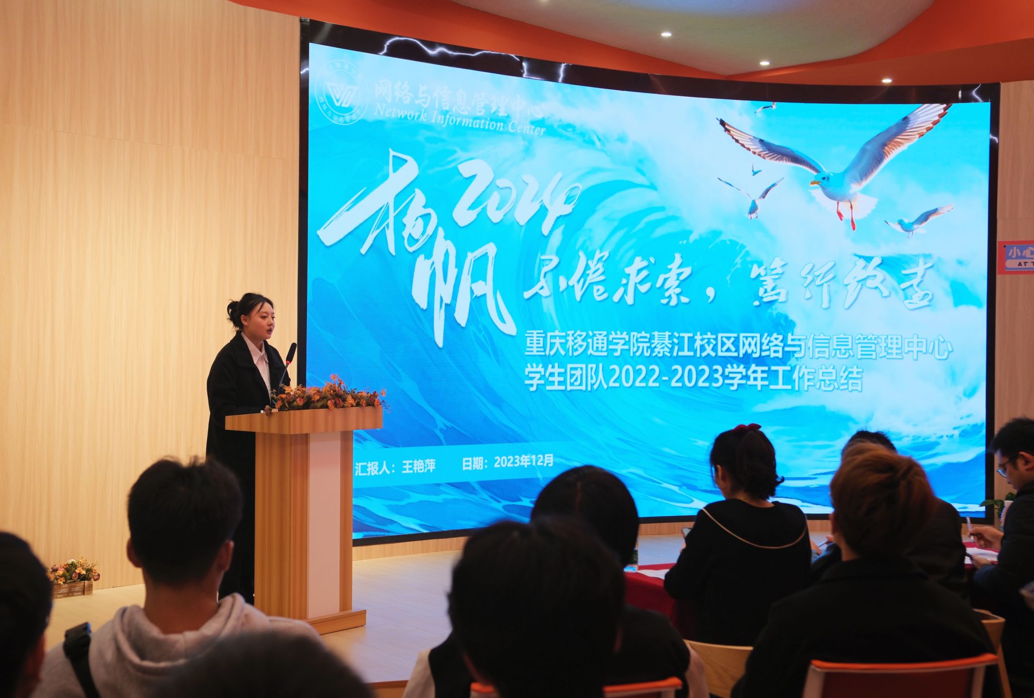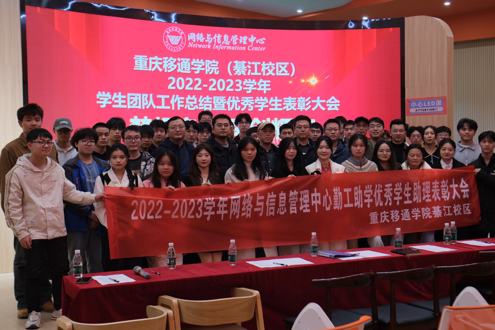 日月其迈,时盛岁新。12月6日,重庆移通学院(綦江校区)2022-2023学年网信中心学生团队工作总结暨优秀学生表彰大会在古剑书院含光.报告厅召开。我校大数据学院副院长吕云山、党政综合办副主任曹瑞峰、教务处副处长钟波、学生处副处长唐尚静,集团信息化专家潘良晋、勤工助学中心主任温宗航、网信中心主任吉腾渝及网信中心全体师生参会,会议由黄佳睿同学主持。