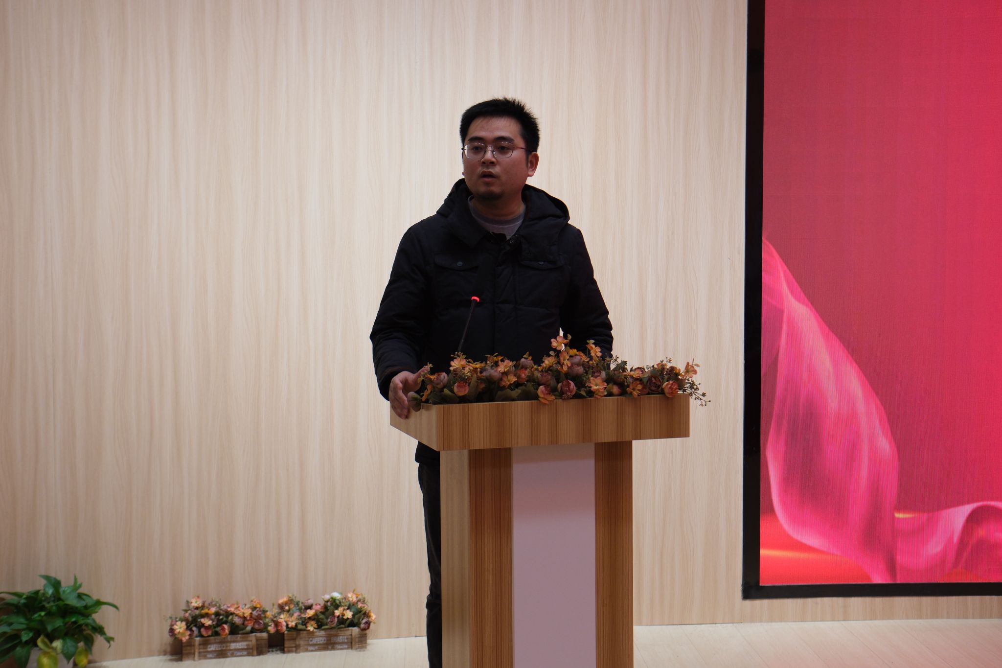 随后,网信中心吉主任上台致辞,表示了对两个学生团队工作的高度认可与支持并给予深厚期望,希望大家能够坚持不懈,创造一份属于自己的未来。