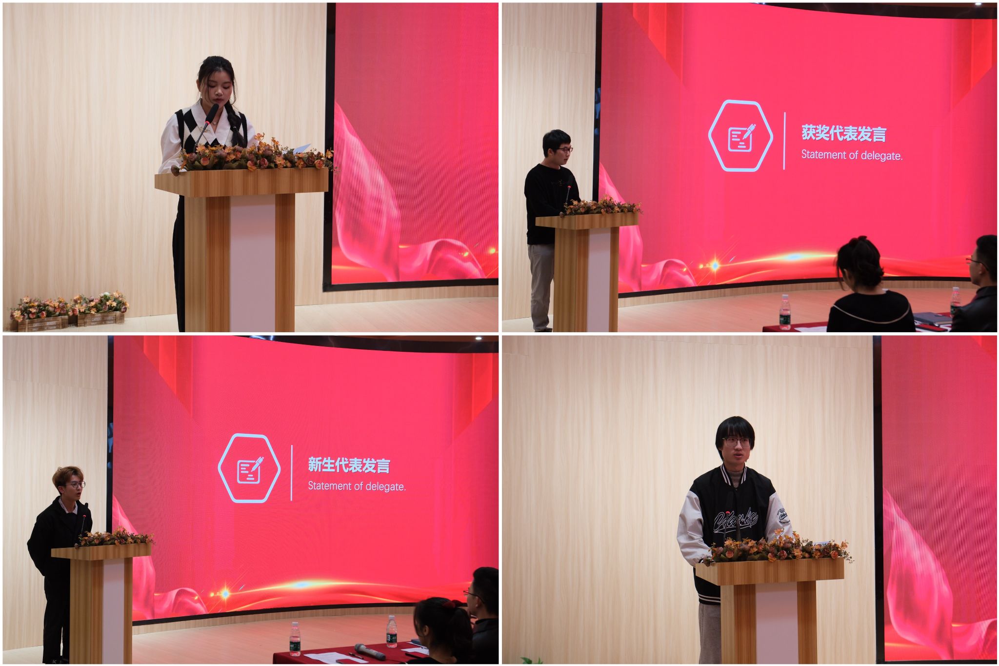 随后,由获奖学生代表晏加利、何丽婷同学及新生代表张健、花必锦同学进行发言,分享个人成长经历以及在团队中开展工作的感想。