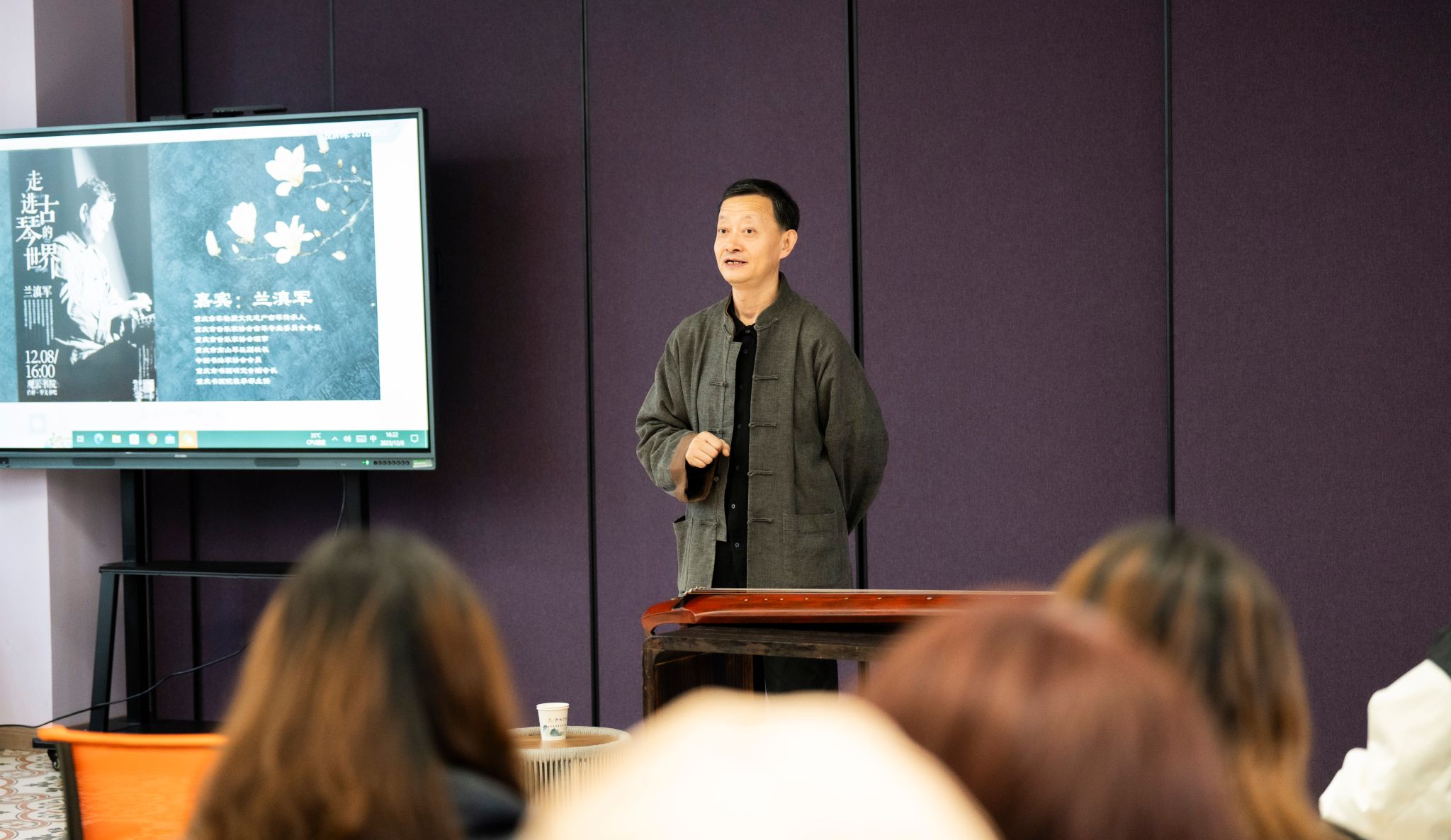 作为中国传统拨弦乐器,古琴有着三千年以上历史,音色深沉,余音悠远。12月8日,古琴家、重庆音乐家协会古琴专业委会会长、重庆市非物质文化遗产古琴传承人兰滇军先生做客观云书院,在余韵悠远的古琴声中,为戏剧影视学院的师生带来了一堂沉浸式的古琴艺术鉴赏课,让大家零距离感受中华传统文化的别样魅力。