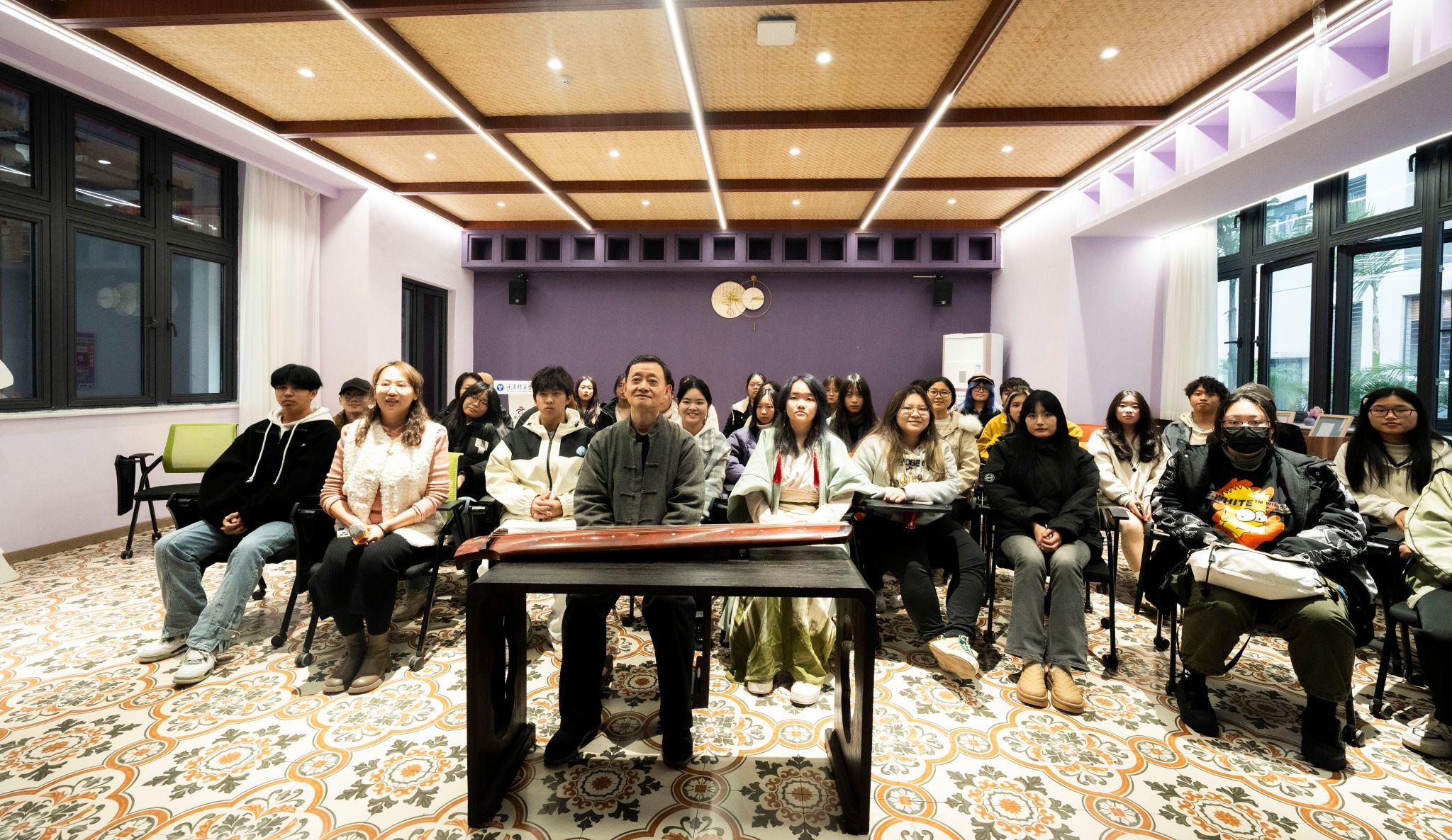 活动伊始,兰滇军先生从伯牙子期的故事引入,带领同学们体悟古琴演奏中的太古遗韵。“关于琴,我们知道俞伯牙和钟子期高山流水的故事,那是寻觅世间知音的希翼。兰先生缓缓说道:“古琴有三个听众。一是弹给自己,自己与自己的对话,听见内心的声音;一是弹给自然,听见天空的回响;一是弹给友人,听见懂得的真切。”