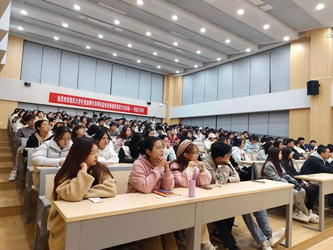 历史大潮,浩浩荡荡;时代列车,疾速奔驰。在数字化、网络化、智能化深入发展的大背景下,我国短视频行业迅速发展,抖音已悄然进入大众视角,成为互联网文化产业的重要增长点。11月29日晚上七点,重庆移通学院数字媒体产业学院邀请到重庆大学生创业孵化基地签约短视频运营导师张益铭老师做客我校“文化移通”——商道大讲坛,于玉棠书院阶梯教室开展了《抖音运营基础》的主题讲座,带领同学们走近短视频创作,了解短视频运营的方法。