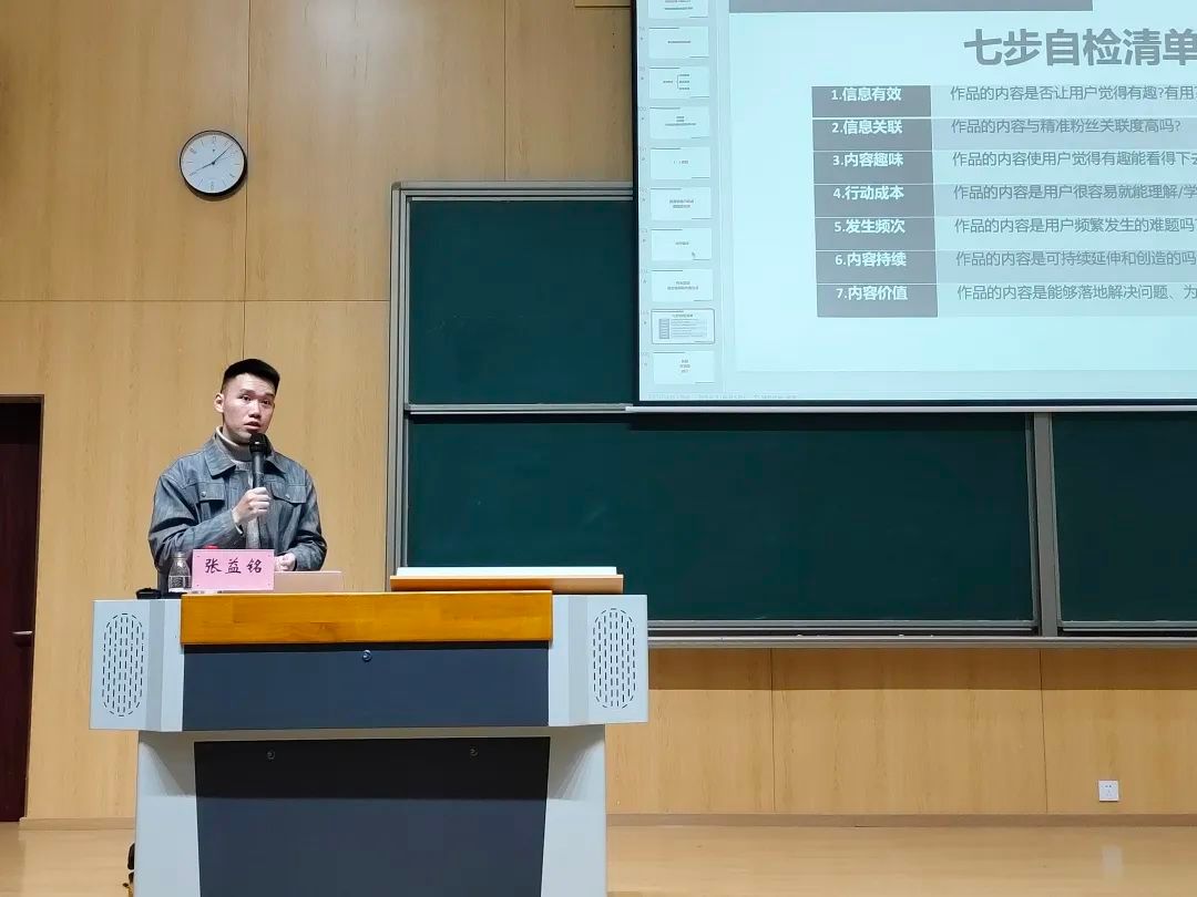 短视频是展示美好生活的数字载体。短视频行业的持久发展,有利于切实贴近日常生活、与时代同频共振,深度释放生产要素潜能。张益铭老师提出抖音的运营首先要确定运营方向,然后做好策划,最后确定目标受众及创作计划。同时,抖音对于短视频的审核也十分严格。张益铭老师着重强调了短视频行业在价值导向上,应以社会主义核心价值观为引领,把社会效益放在首位,实现社会效益与经济效益的有机统一;在题材选择上,要强化现实关注、人文关怀,反映中国现代化生动场景;在传播上,要进一步把握科技发展、技术变革的新趋势。在视频发布之后,还需要进行数据复盘和细节方面的优化。
