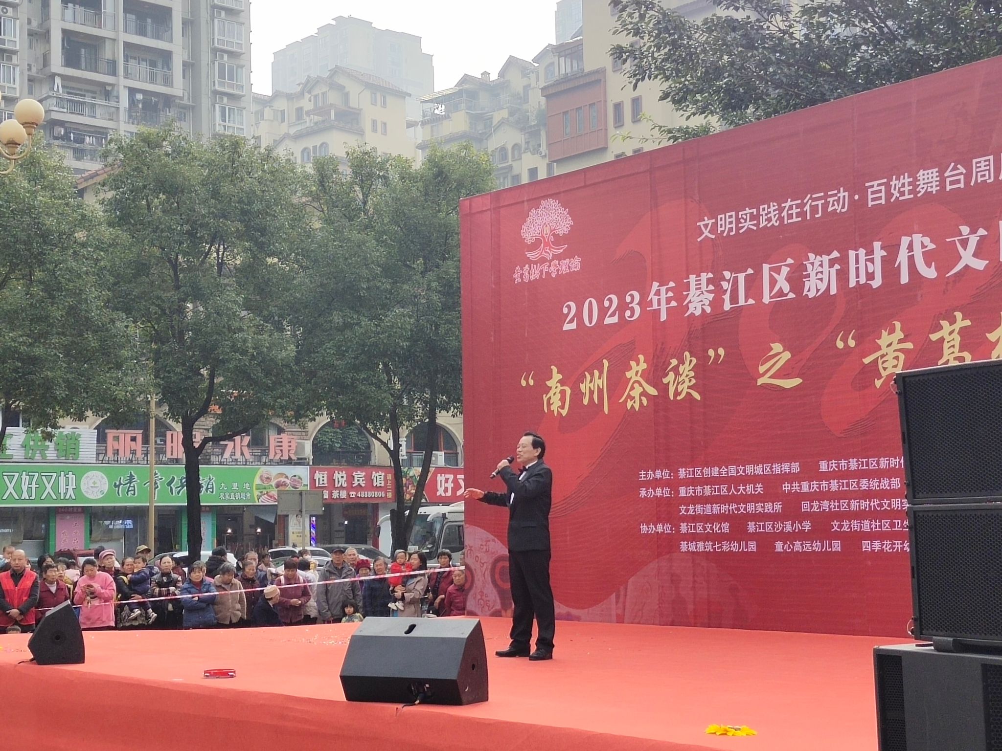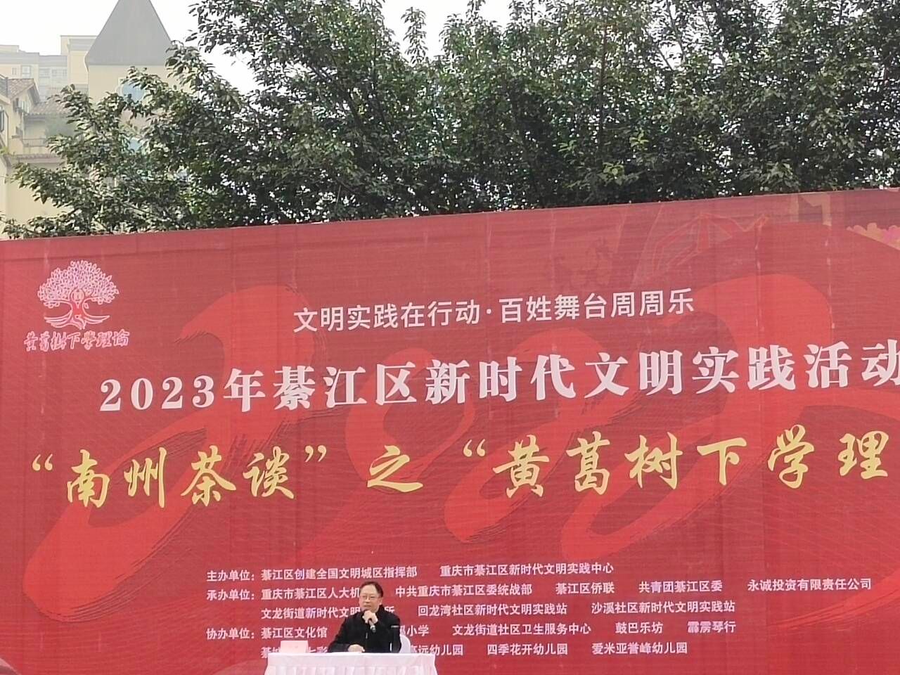 黄葛树下,区人大机关刘成主任用通俗易懂的“乡音”向群众传递家乡故事,把党的方针政策宣传到各机关、社区、学校、农家院落,将城市的发展成果真正分享到群众身上,丰富群众日常文娱生活,推动理论学习走深走实。