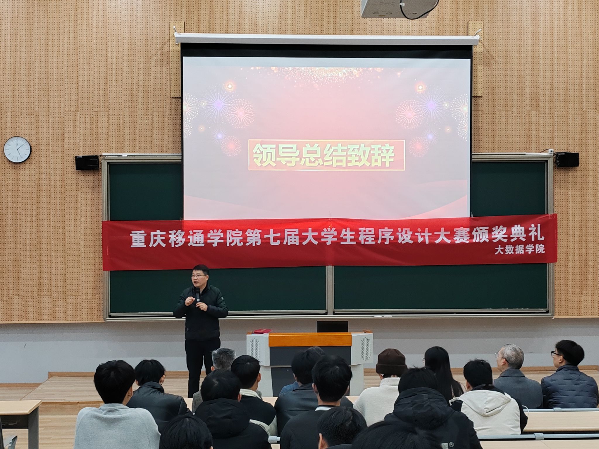 闫会峰院长做最后颁奖典礼总结致词:大家好!今天,我们在这里隆重举行重庆移通学院算法竞赛颁奖典礼,我非常荣幸能够在这里代表学校向各位获奖团队表示热烈的祝贺!感谢各位参赛同学和指导老师们的积极参与和支持,是你们的努力和付出让这场竞赛得以成功举办。同时,我也要感谢学校各部门的大力支持和帮助,是你们的协作和支持使得这场竞赛能够圆满结束。