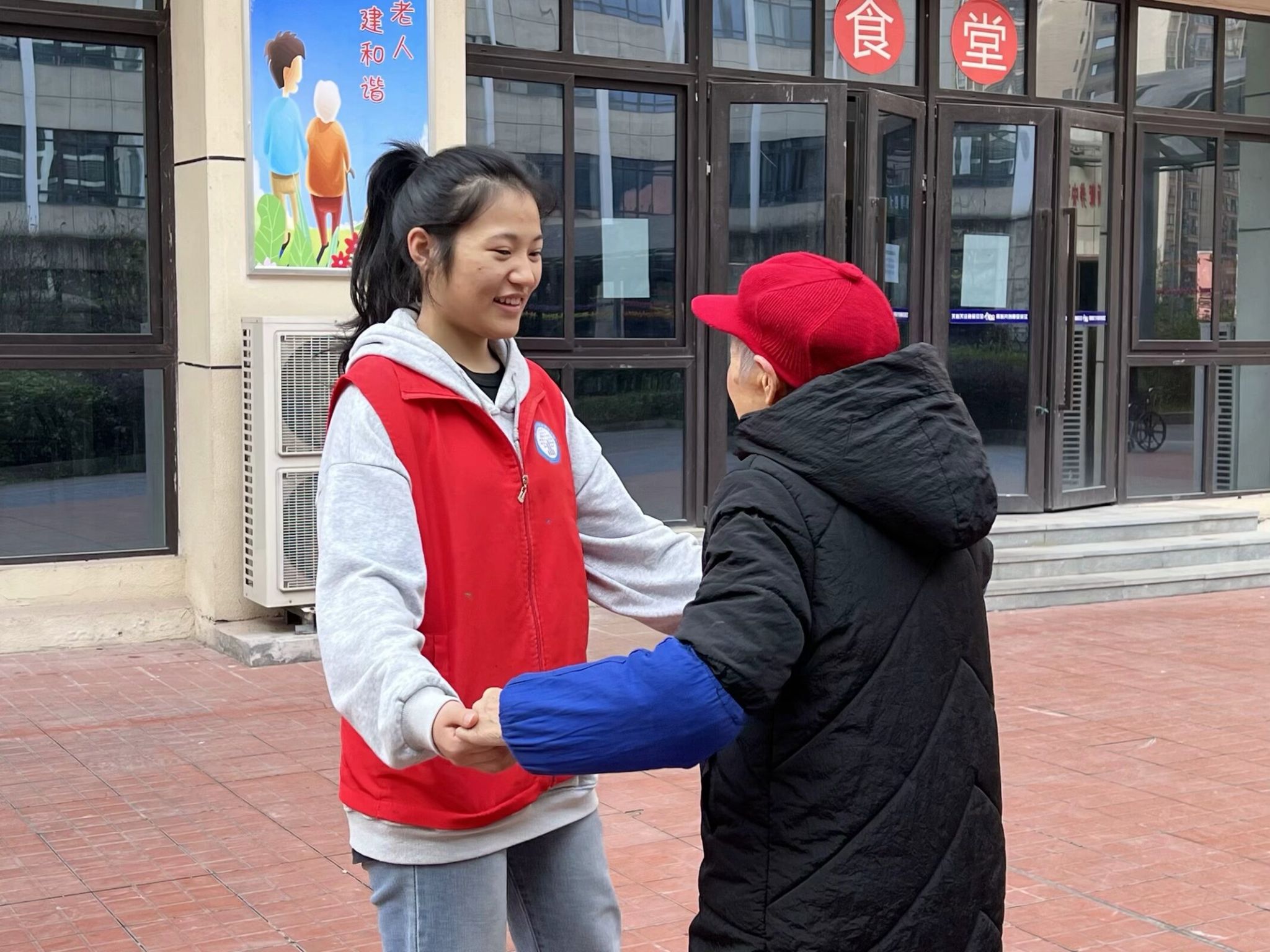 另一位雷婆婆,一位多才多艺的老人。刚见面就贴心询问志愿者是否想喝水。随后拉着志愿者同到楼下晒太阳。亲切热情地教志愿者跳交际舞,并分享自己编写的歌曲。在舞步与音乐的交织下,气氛渐显愉悦。她们的笑声弥漫于空中,冬日的阳光映的这一幕格外温馨。虽时间短暂,但这份相遇相念的温情却弥足珍贵和长久,可见些许的陪伴便是对光阴最好的回馈。