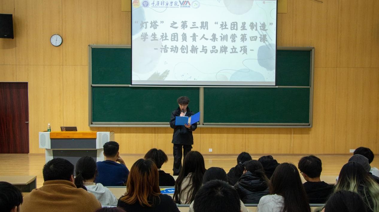 “灯塔”之第三期“社团星制造”学生社团负责人集训营第四课——《活动创新与品牌立项》于12月14日在玉棠书院阶梯教室正式拉开帷幕。为学生社团负责人提供全新的视角和思考方式,进一步提高学生社团负责人的创新思维,打造社团特色活动和品牌活动,提升社团活动的创新性和特色性。