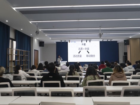 周靖鱼老师特别强调宣传的重要性,通过列举一些活动实例,向学生社团负责人说明宣传力度的大小对于一个活动的影响,同时强调也可以通过与其他社团联动融合进行宣传。通过周靖鱼老师的讲解,让学生社团负责人们明白宣传与推广对于社团活动的强大影响力。