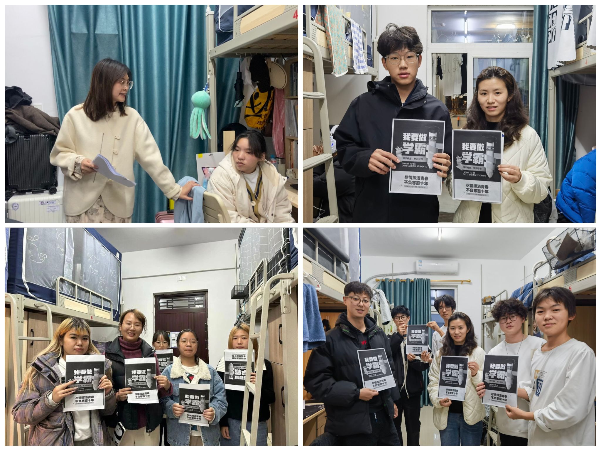 宣传教育倡学风,培根铸魂育新人。12月,戏剧影视学院通过辅导员走进宿舍、走进课堂、走进学生活动等形式,线上线下全方位开展学风建设宣传教育,引导学生在校内各场所灵活开展“我要做学霸”学风打卡行动,在打卡过程中,学生强烈感受到期末的紧张感,对各科作业的重视程度明显提高,学生整体呈现出“收心”状态。