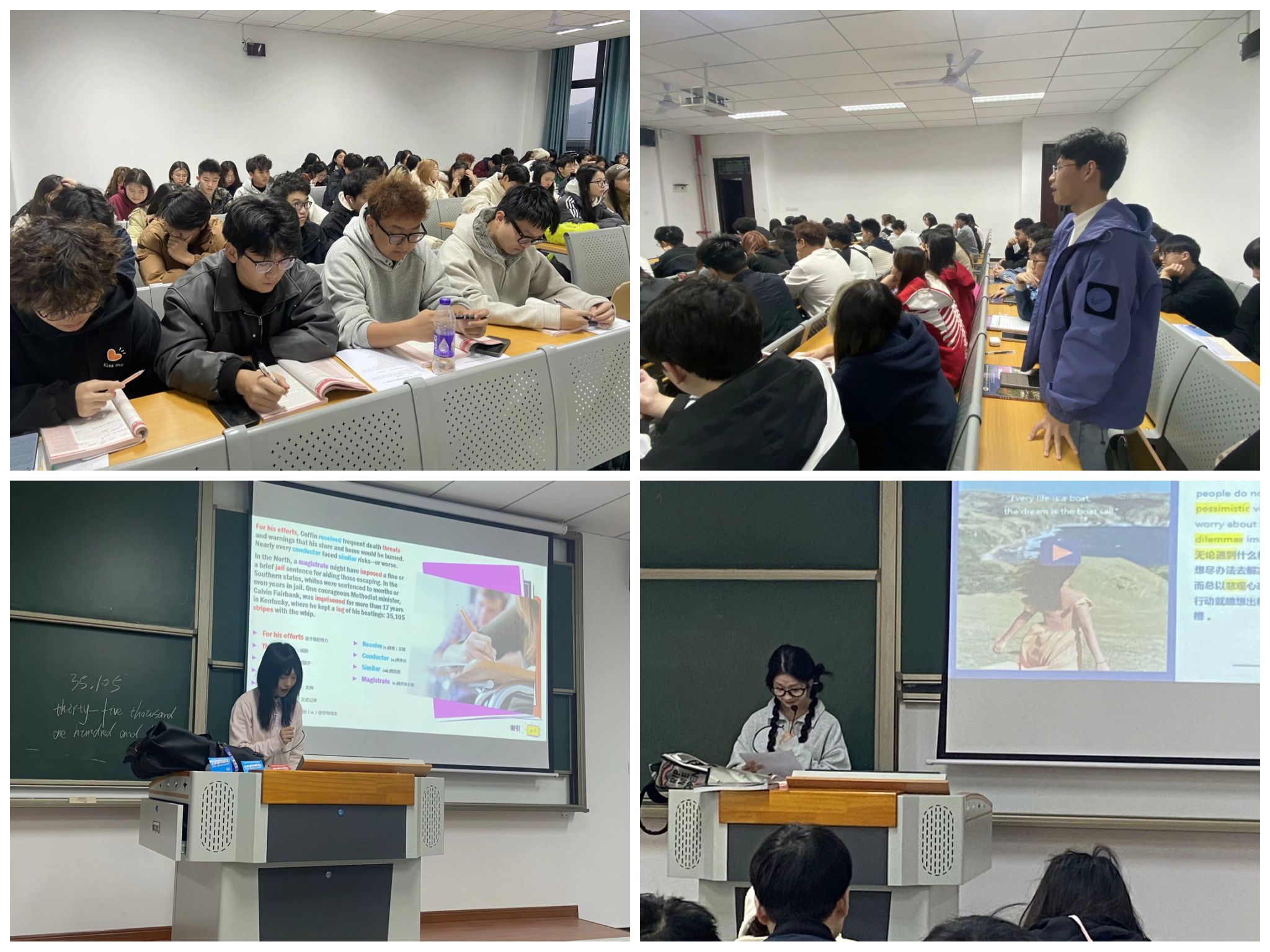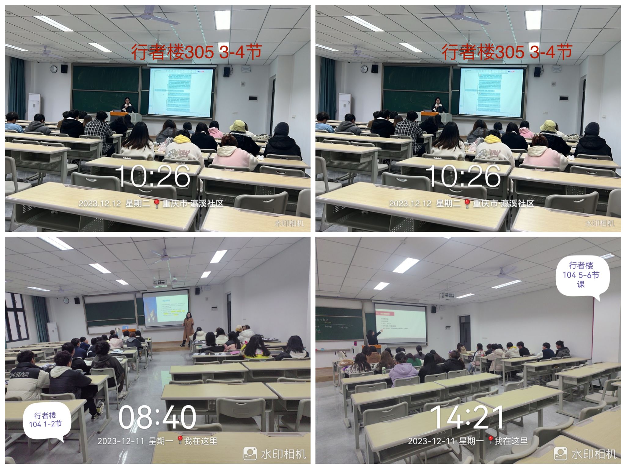 2、以学正风,笃学力行,戏影学风在课堂。临近期末,学院2个年级、3个专业、604名学生,在各科老师的带领下,专注在课堂的每分每秒,不少同学主动起立回答问题并到台上进行汇报展示,时有辅导员老师、班导师和学院学风督察员到课堂查课,关注学生在课上的学习状态,提醒走神的同学打起精神,为备战期末打下基础。任课老师与辅导员深度交流学生情况,抓住学生学习的“难点”,聚焦课堂互动的“痛点”进行“学风+课堂”主题探讨,想方设法案解决学生课堂上暴露的问题。