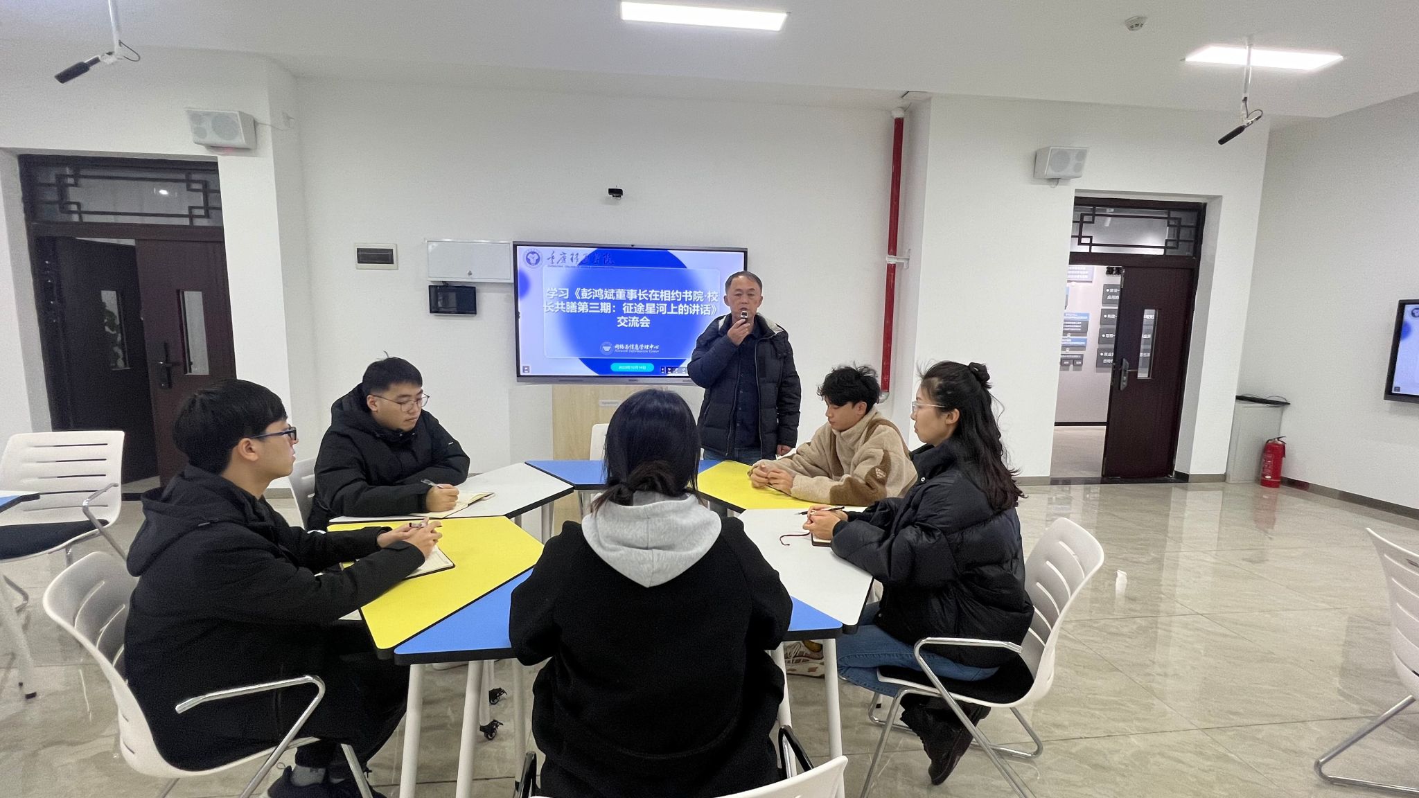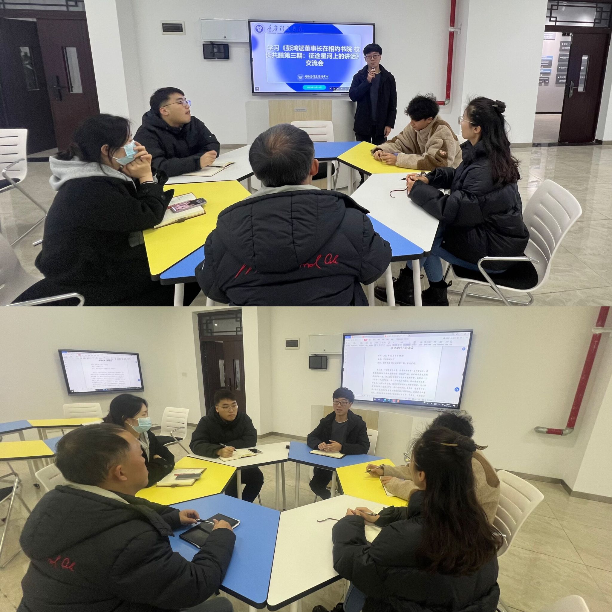 为贯彻落实《彭鸿斌董事长在相约书院·校长共膳第三期:征途星河上的讲话》精神,促进教职工职业成长,为社会提供高情商、创造力的学生,网信中心于12月14日在实训楼105智慧教室召开了“董事长讲话精神”学习交流会,会议由网信中心主任吉腾渝主持,网信中心全体老师参加。