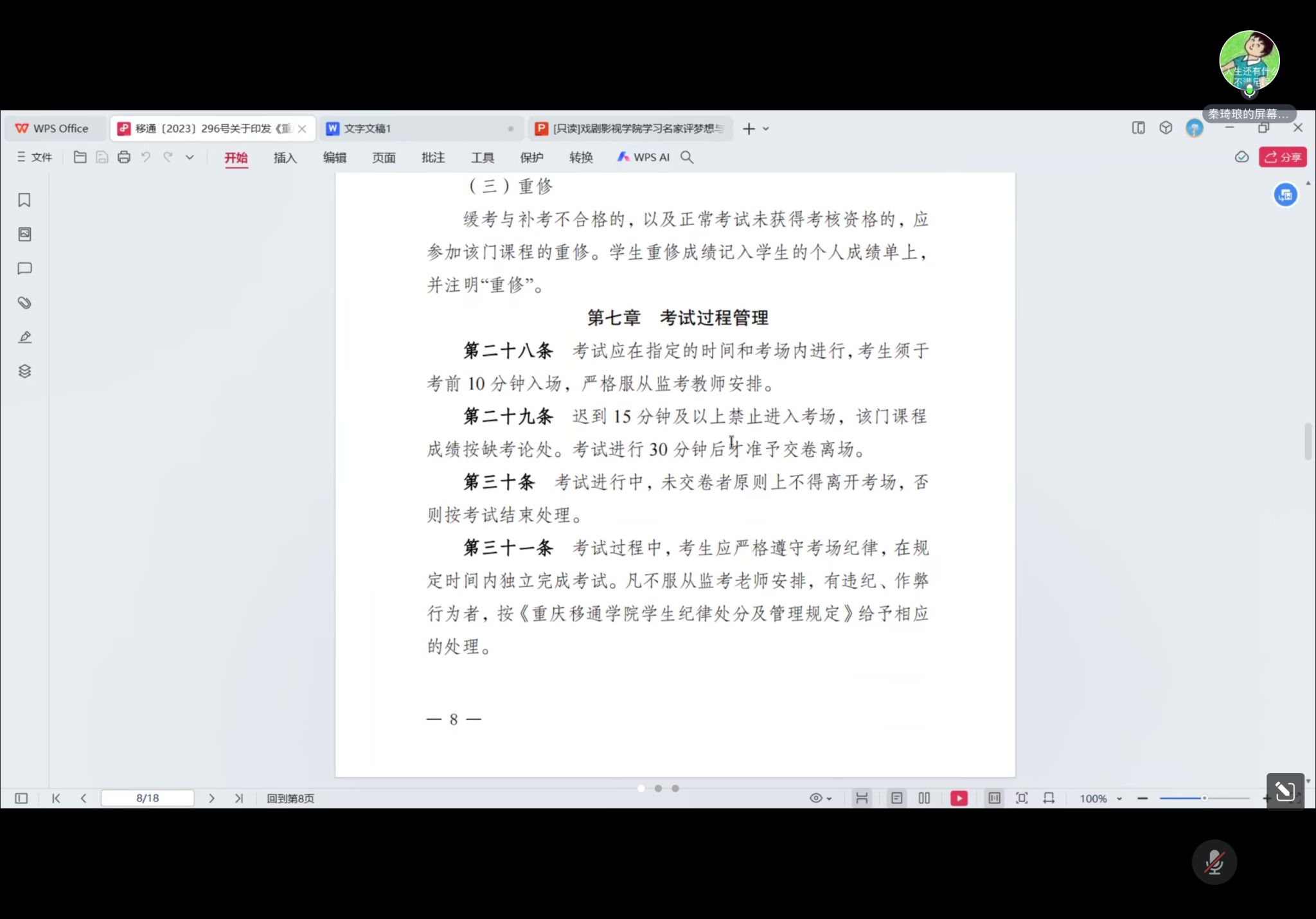 随后,王芳院长就本学期学生日常管理工作、安全工作、意识形态把控、学生心理健康引导等工作开展情况进行相关总结。同时指出要切实增强安全稳定工作,做到线上宣传与线下指导并行,以进一步夯实安全稳定基础,筑牢安全稳定防线。影视工程教研室主任秦琦琅还对近期重点工作进行了安排部署:一是期末考试临近,各专业教师与辅导员要做好学生考前心理辅导,关注学生情绪,引导其认真备考、科学复习;二是强调诚信考试,严格遵守考场纪律,端正考风严肃考纪。注意关注考后学生情绪,确保期末各项工作平稳有序;三是提出要扎实做好意识形态工作,强化意识形态教育,教师要以身作则,筑牢师德师风思想防线。