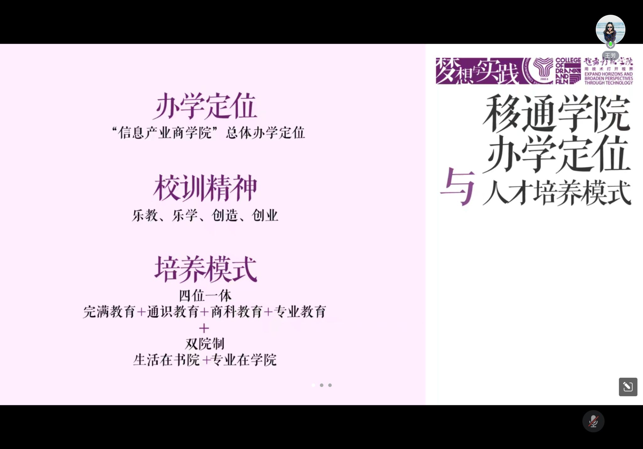 本次会议中,戏剧影视学院组织全体教职工就《名家、名师评<梦想与实践>》书评进行了深入的学习和讨论,深刻学习领会了《梦想与实践》一书中彭鸿斌董事长一系列重要的教育观点与教育理念。王芳院长领学了《名家、名师评<梦想与实践>》文件中的核心内容,结合戏剧影视学院办学专业特色、学生发展特色,细致讲解了“四位一体双院制”人才培养模式,深刻解读了我校“信息产业商学院”的办学定位。王芳院长指出,教师作为完满教育理念的践行者,需因材施教、打破俗规,关注培养学生的社会能力、情商沟通能力、组织能力和表达能力,培育出数字经济时代的高情商经营管理人才。