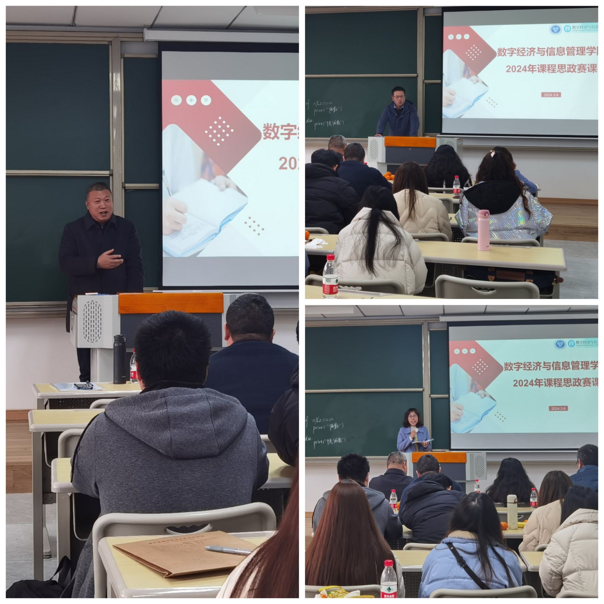 2024年3月6日下午,数字经济与信息管理学院在行者楼103举行课程思政教学比赛。本次比赛旨在展示学院教师的教学风采,提升课程思政教学水平,同时也为青年教师们提供了一次难得的学习机会。