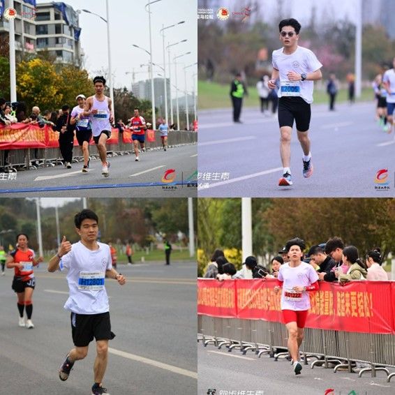 马拉松并不是一项简单的运动,它需要强健的身体与坚定的毅力。移綦长跑社成员日常积极参加训练,已基本具备完成半程马拉松的能力。随着时间一分一秒的过去,社团四名选手纷纷冲线。最终郎东洲、李俊佶、马龙飞分别以1:38:32、1:39:55、2:18:28的成完赛半程马拉松项目,陈金桥以3:08:45的成绩完赛全程马拉松项目。其中李俊佶大幅PB表示:“即使自己的脚趾磨出了水泡也没有放弃,当自己冲过终点时感觉一切都是值得的,自己后面会制定完善好训练计划,希望后面首个全马取得不错的成绩。”陈金桥也说道:“这是他人生的第一个全程马拉松,开始是定的‘破三’的目标的,出发状态良好,‘首马破三’近在咫尺,但正如跑圈说的那样‘马拉松、马拉松,30公里以后才叫马拉松’,后面吃那些补给感觉都没用了,但自己一直坚持着信念顺利完赛。”陈金桥首马便打开310大关,为日后“破三”奠定了坚实基础。赛后,马龙飞也激动的说到:“自己顶着髂胫束的伤痛坚持完成了自己第一个半程马拉松,还是很高兴的;有志同道合的小伙伴一起便迅速是报了名,后面还会加强力量与核心训练,期待伤痛都会随着时间而逐渐的消失。”社长郎东洲感慨道:“这次比赛状态不佳,在中途多次补水虽然没能PB,但也让自己意识到了欠缺之处,赛后会制定更完善的训练计划以迎接接下来的比赛。也感谢校团委对长跑社的大力支持,将准备带领长跑社取得更好的成绩。”