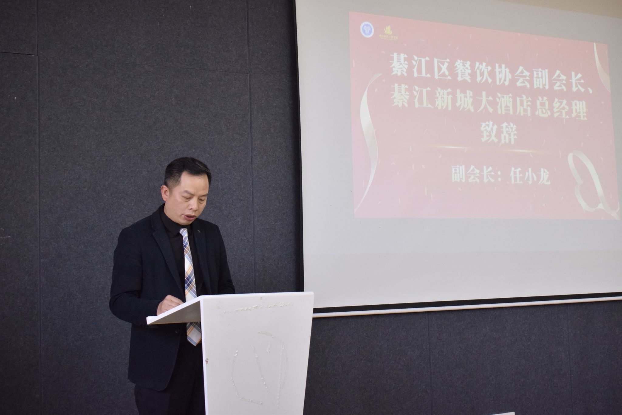 会议伊始,任总经理致辞。他表示,随着国内外旅游业的蓬勃发展,新模式、新形态、新场景层出不穷,酒店商务产业正面临着前所未有的发展机遇。重庆移通学院酒店商务产业学院以培养复合型经营管理人才的理念,是对酒店产业多元发展的回应,也是对同学们实现个人梦想的实际行动助推。任会长展望学院发展前景的同时,提出可以结合地理优势,进一步打造酒店实训基地,让新城大酒店成为同学们理论实践的平台。