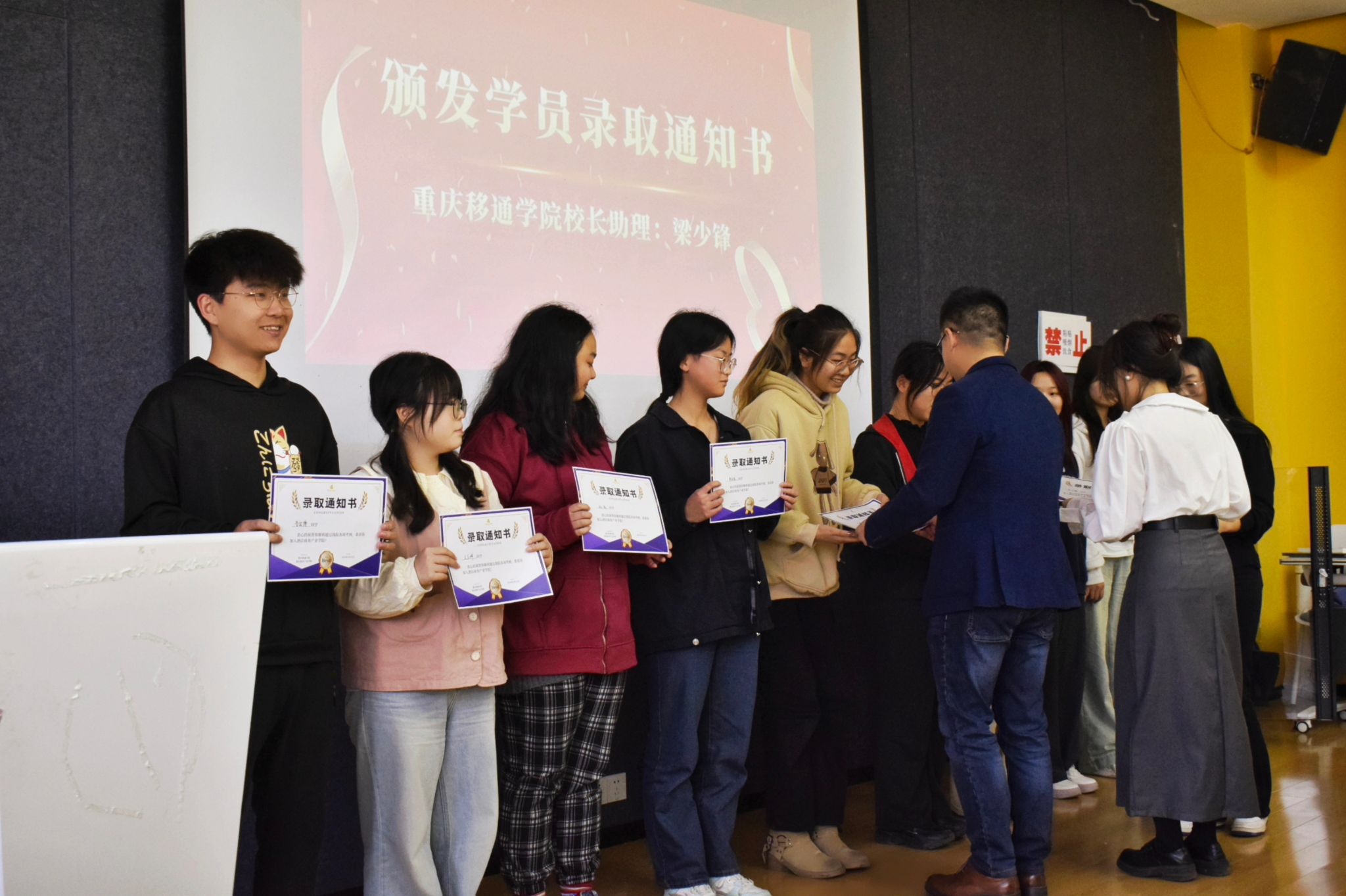 热烈的掌声中,梁少锋校长助理为学生代表颁发了录取通知书。酒店商务产业学院的每一封通知书都承载,酒店商务产业学院培养数字经济时代酒店产业的高情商经营管理人才的办学使命。拿到通知书的百余名同学正式入学,他们将在学院提供的优质资源与平台下,扬帆起航。