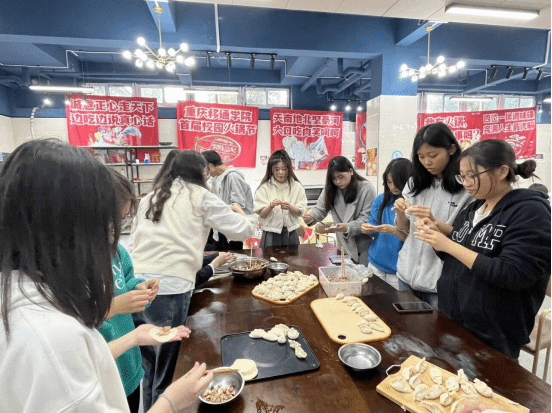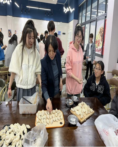 杨晓红老师与其他异科导师班级联谊包饺子活动,同学们积极参与,积极策划,预约时间和场地,确定食材种类和数量,老师采购准备,男生洗菜切菜,女生搅拌肉馅,学生和老师有说有笑一起包饺子,互相比赛谁包的饺子最漂亮,最饱满,气氛热烈,最后同学们觉得还是自己包子的最好吃。