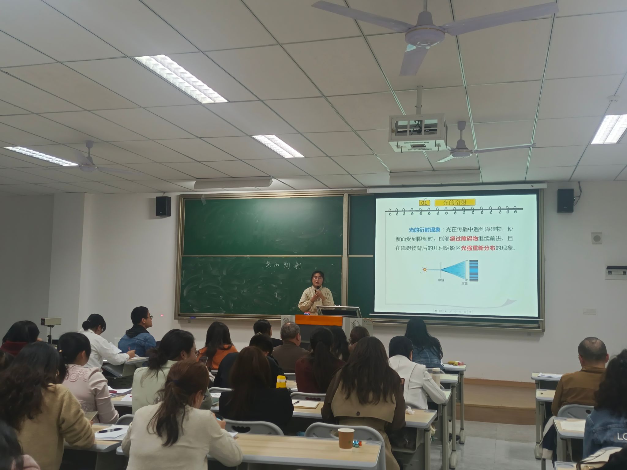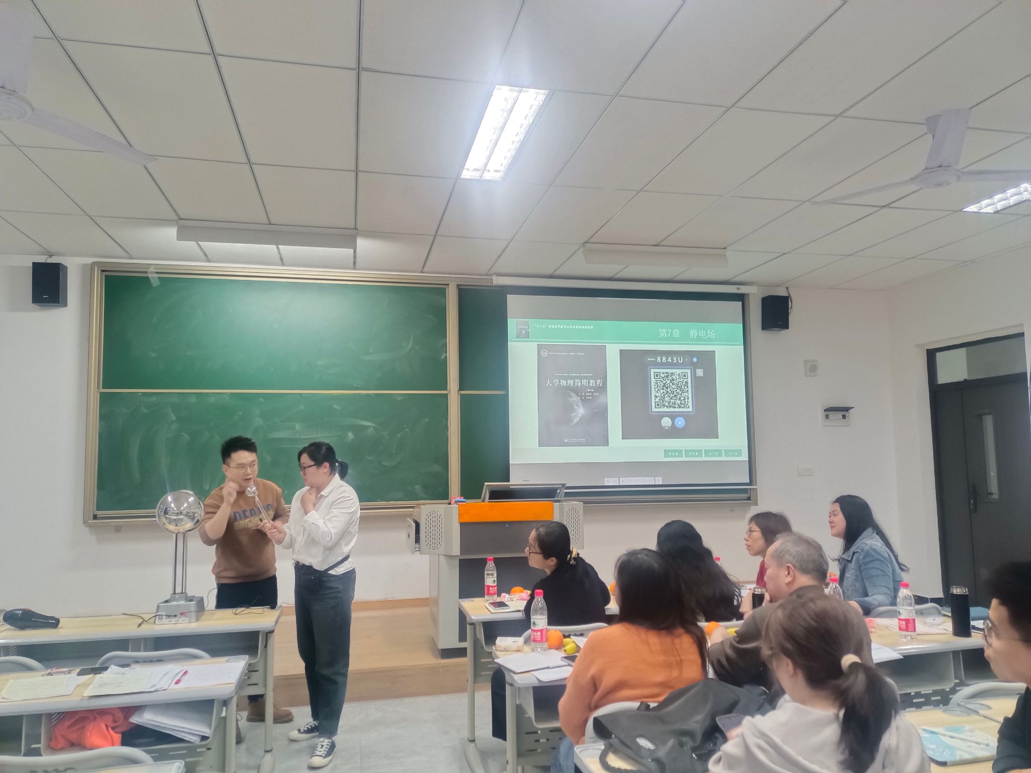 龙林老师和杨国卉老师通过物理实验道具较生动形象地引出了教学问题,并通过互动演示的教学手段,让人眼前一亮,并借助讲解让大家见识到物理在生活中的魅力。