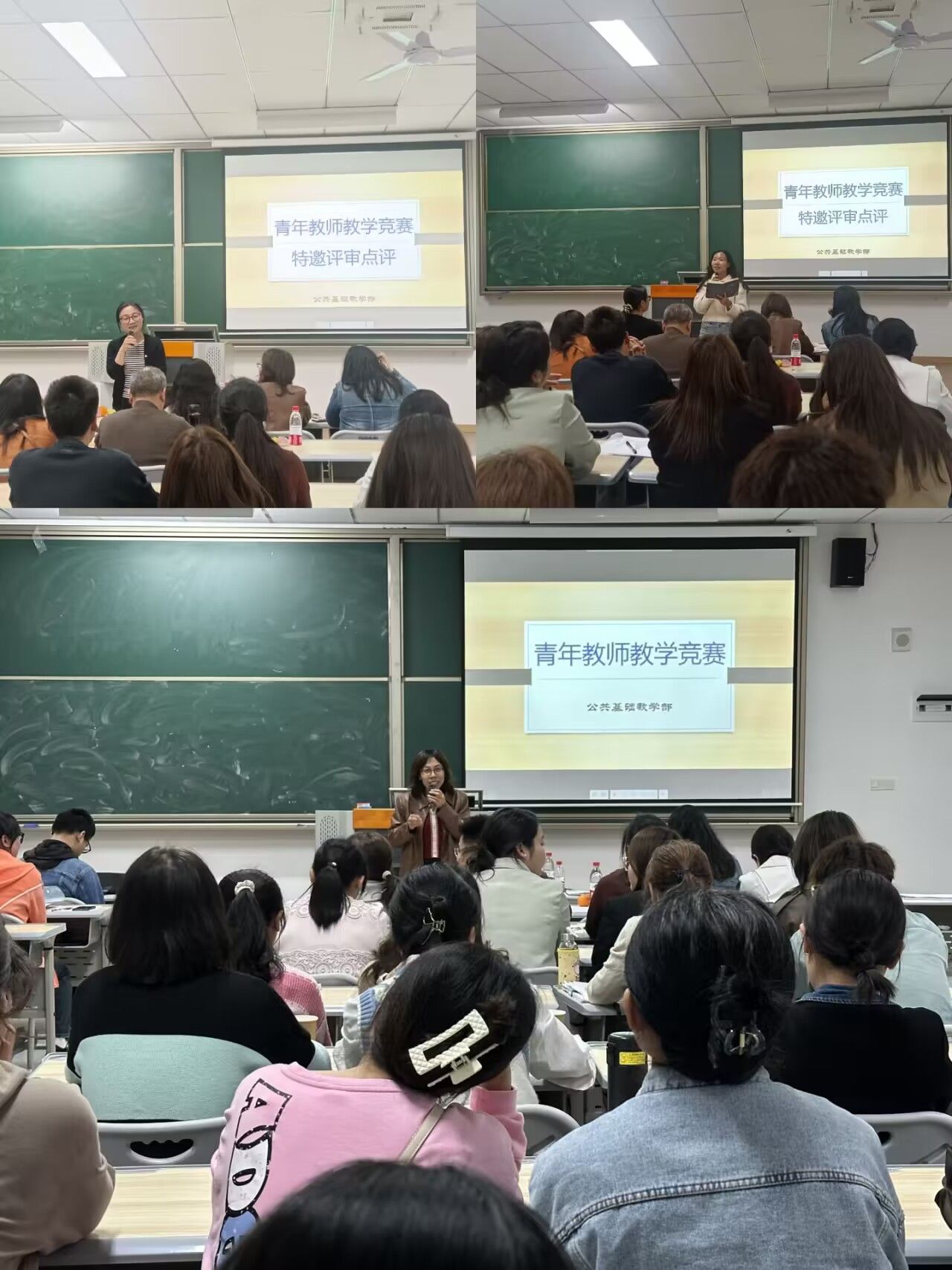 本次竞赛经过各教研室的选拔共推选出十名青年教师参赛,由边梦柯老师主持,程龙老师任计时员。并特别邀请了通识教学部张艳副主任,数字经济与信息管理学院张红老师及部门陈玲、朱陶、闫春娟、廖其力几位副教授担任竞赛评委,公共基础教学部全体教师参加观摩