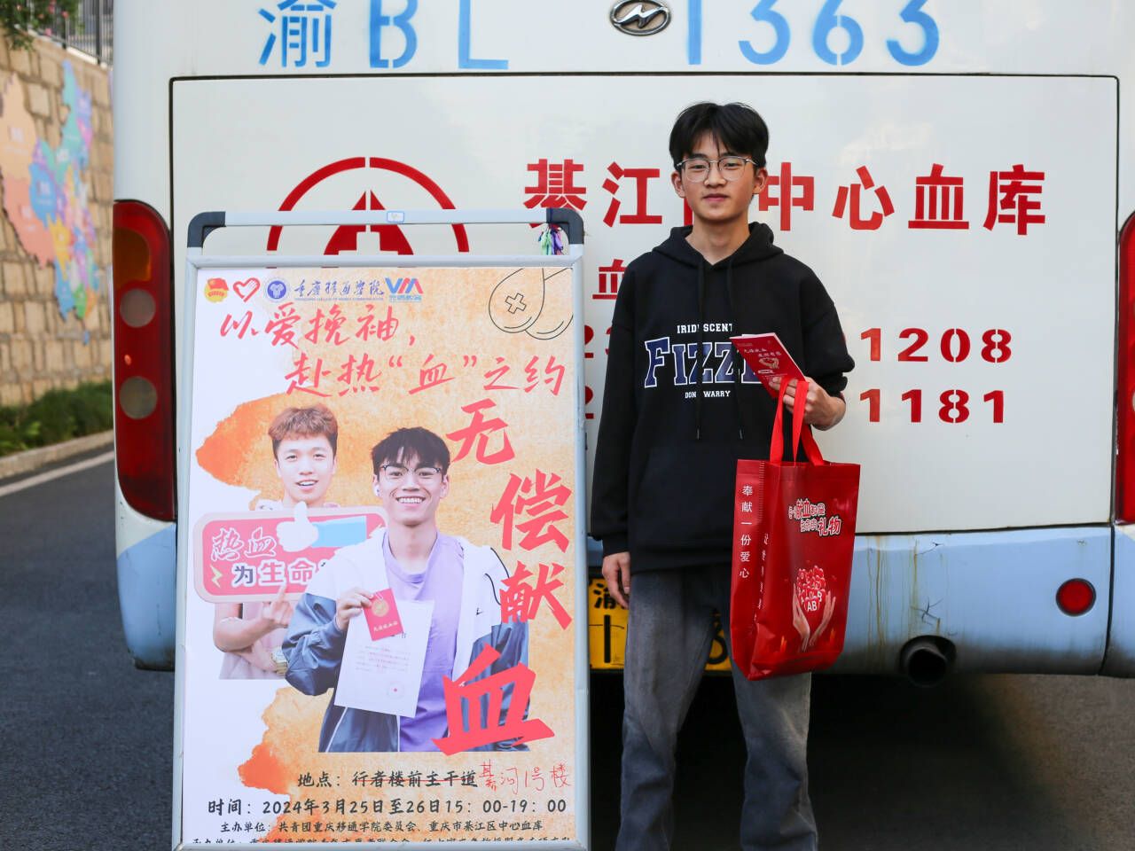 血液,是生命的源泉,无偿献血则是一种无私奉献、救死扶伤的高尚行为。根据世卫组织的标准,我国目前的人口献血率仍有待提高,无法满足临床用血的需求。为改善这一现状,展现新时代下中国青年的担当,我校红十字应急救援志愿服务专项支队于2024年3月25日至3月28日携手綦江区中心血库在校内组织开 “展以爱挽袖,赴‘热血’之约”——无偿献血公益活动。号召更多的青年学子积极参与无偿献血行动,用热血绽放青春光彩,用爱心点亮整个夏天。