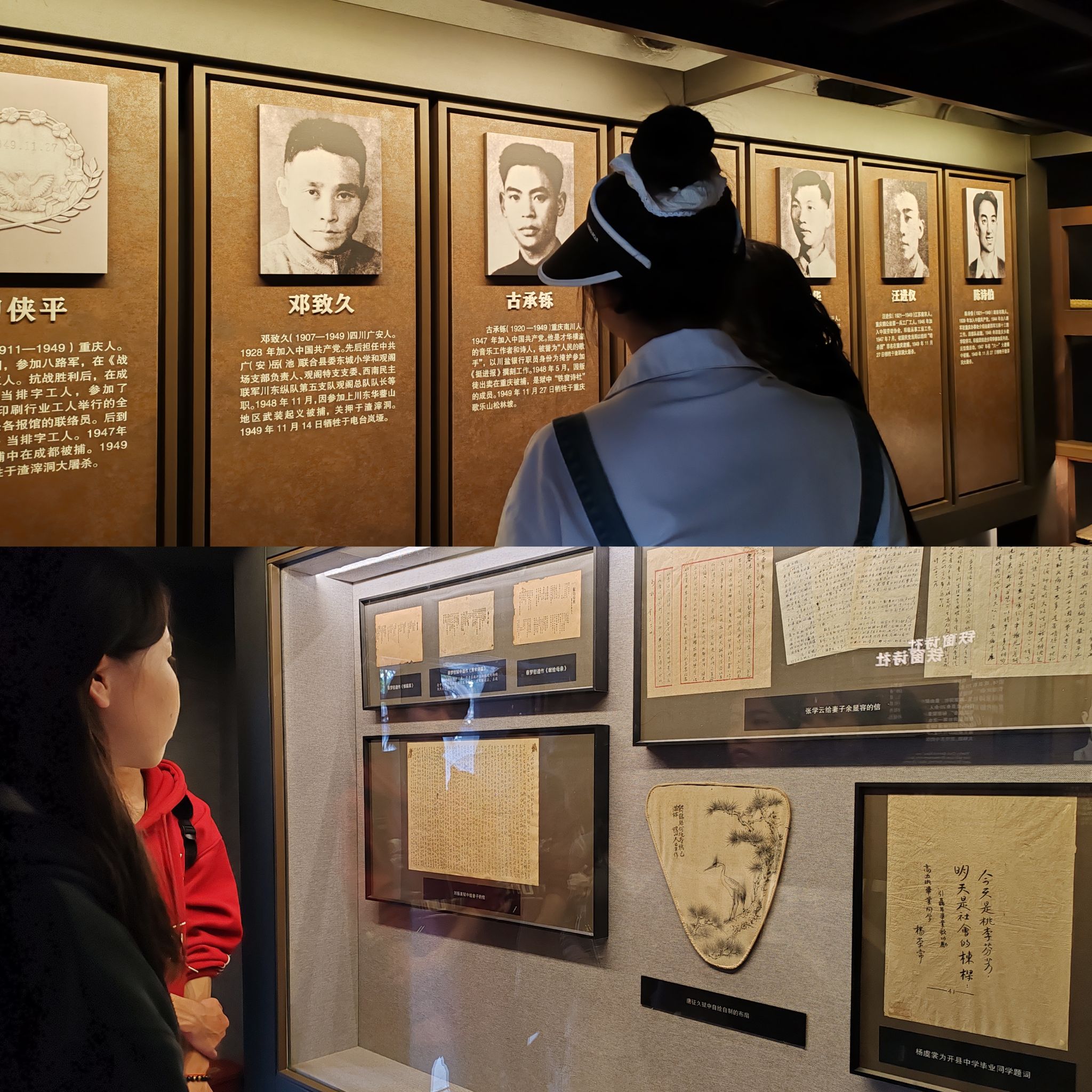 来到渣滓洞,同学们跟随讲解员的步伐,认真仔细的进行了参观。在讲解员的生动讲解下,同学们了解了渣滓洞集中营旧址的变迁,学习了江竹筠、杨汉秀等革命先烈可歌可泣的英雄事迹,知悉了我们党在革命战争年代艰苦卓绝、血雨腥风的奋斗历程。大家怀着十分崇敬的心情,在一张张珍贵的历史照片、一座座革命烈士雕像、一间间阴森的囚牢前久久伫立,感受革命先烈威武不屈、英勇无畏、视死如归的伟大精神。参观结束后,同学们久久不能平静,纷纷表示:“今天的和平幸福生活得来不易,我们将继续传承先辈们的精神,不畏艰难勇往直前,更加珍惜现在的生活并更加努力地为实现国家富强、民族振兴、人民幸福而不断奋斗。”