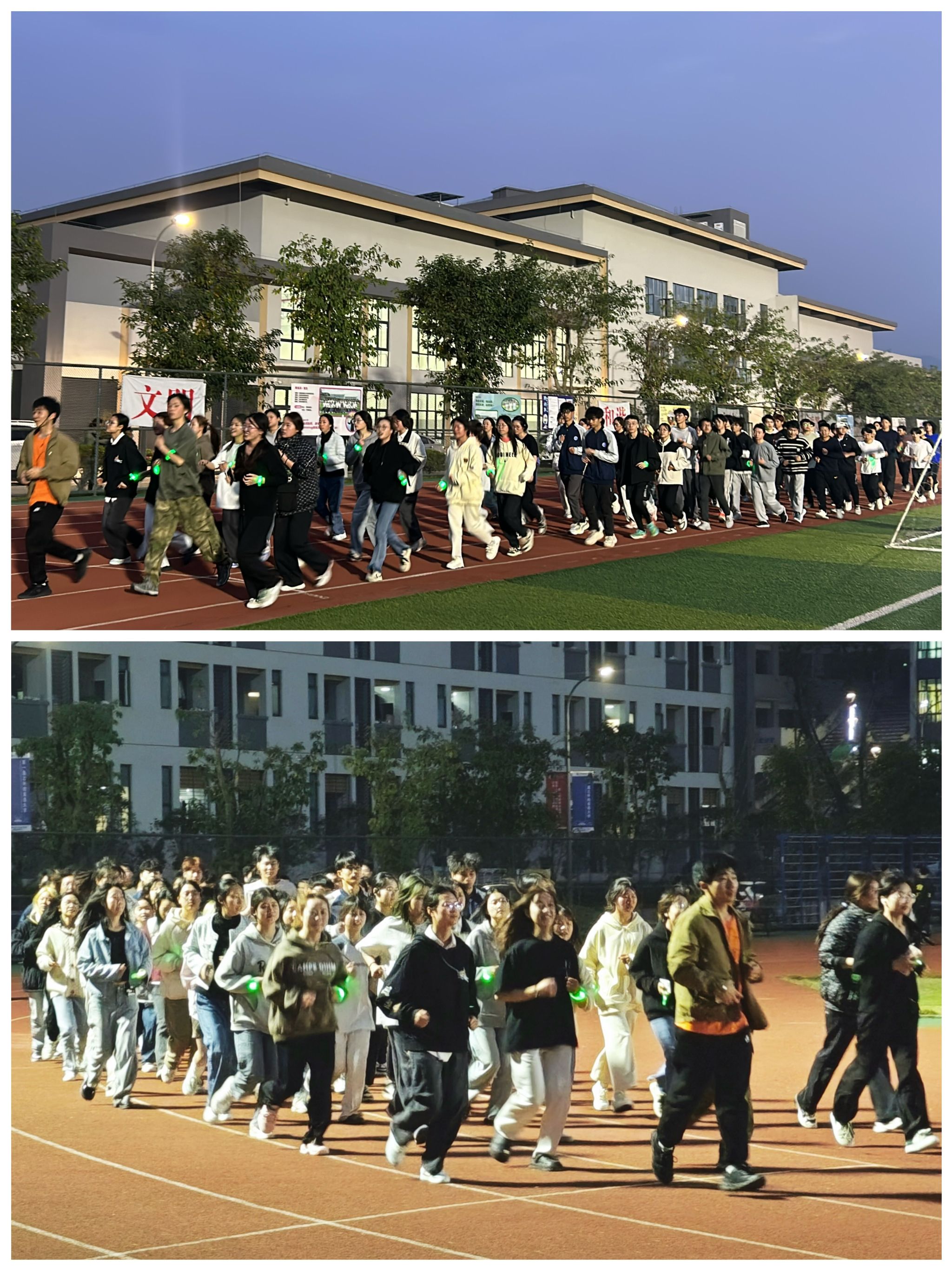3月20日19:00在綦江校区足球场开启了活力奔跑之行——荧光夜跑。本次夜跑由2022级玉棠书院、计算机学院的殷钟豪学长带队,共有100余名同学参与。活动开始,同学们有序列队,在学长的带领下完成了跑前热身运动,随后,大家跟随着学长手中挥舞的荧光棒,踏入跑道,开启了一场暴汗的征途。近40分钟的荧光夜跑后,虽然大家都疲惫不堪,汗如雨下,但同学们的脸上也绽放出了满足的笑容。来自2023级古剑书院、数字经济与信息管理学院的霍润年同学感慨道:“这个活动很好,吸引我们走出宿舍,监督我们锻炼身体,也让我的心情更加愉悦,这场荧光夜跑不仅仅是一场锻炼,更是一次心灵的疗愈之旅。”此次活动的开展,不仅让同学们的身心得到了锻炼,更是让他们的精神得到了放松与升华。