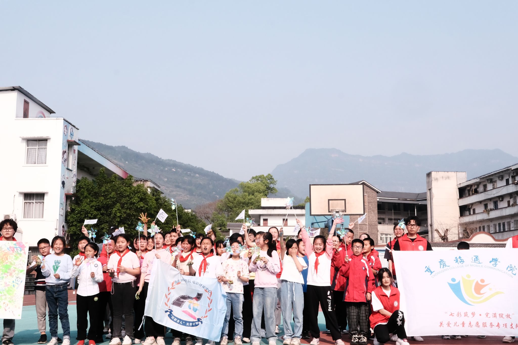 随着活动的圆满结束,孩子们带着满满的收获和快乐的回忆离开了现场。这次活动不仅为孩子们的校园生活增添了色彩,也在他们的成长道路上播撒了艺术的种子。重庆移通学院电影美育实践团队,将继续关注乡村中小学生的需求和发展趋势,不断完善和创新教学方法和手段,为学生提供更多优质的电影艺术教育资源。同时,大学生志愿者们也希望通过“电影美育实践探索”,回馈社会,为“乡村振兴、文化振兴”尽微薄之力。