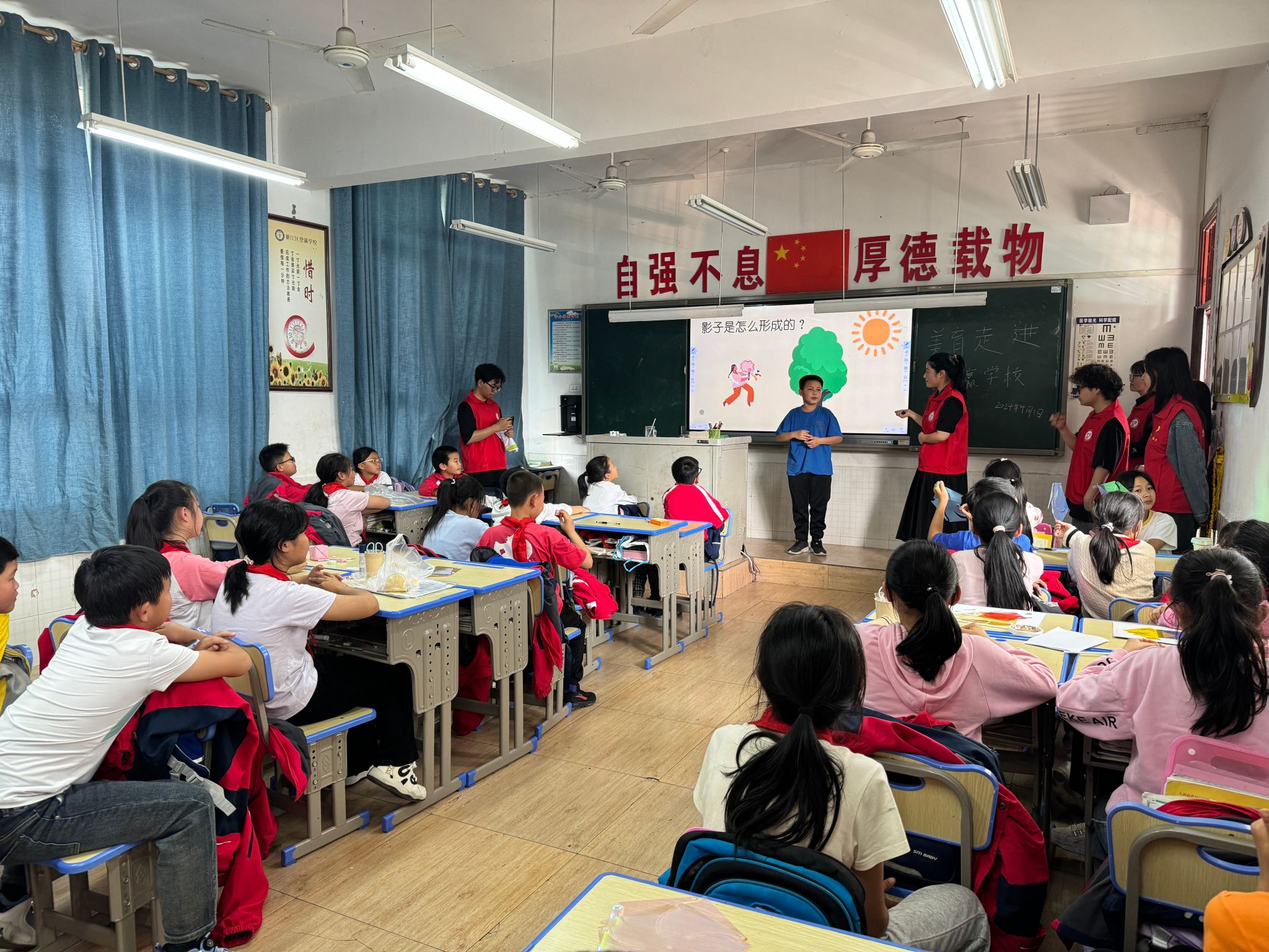 4月1日下午,重庆移通学院“电影美育实践探索”项目志愿者们在电影评论中心谭雪老师的带领下走进了綦江区登瀛学校,为这里的孩子们带来了一场别开生面的光影魔法之旅。本次课程以“光与影的奇妙世界”为主题,通过一系列生动有趣的活动,引导孩子们发现生活中的光影之美,体会电影的光影魅力。