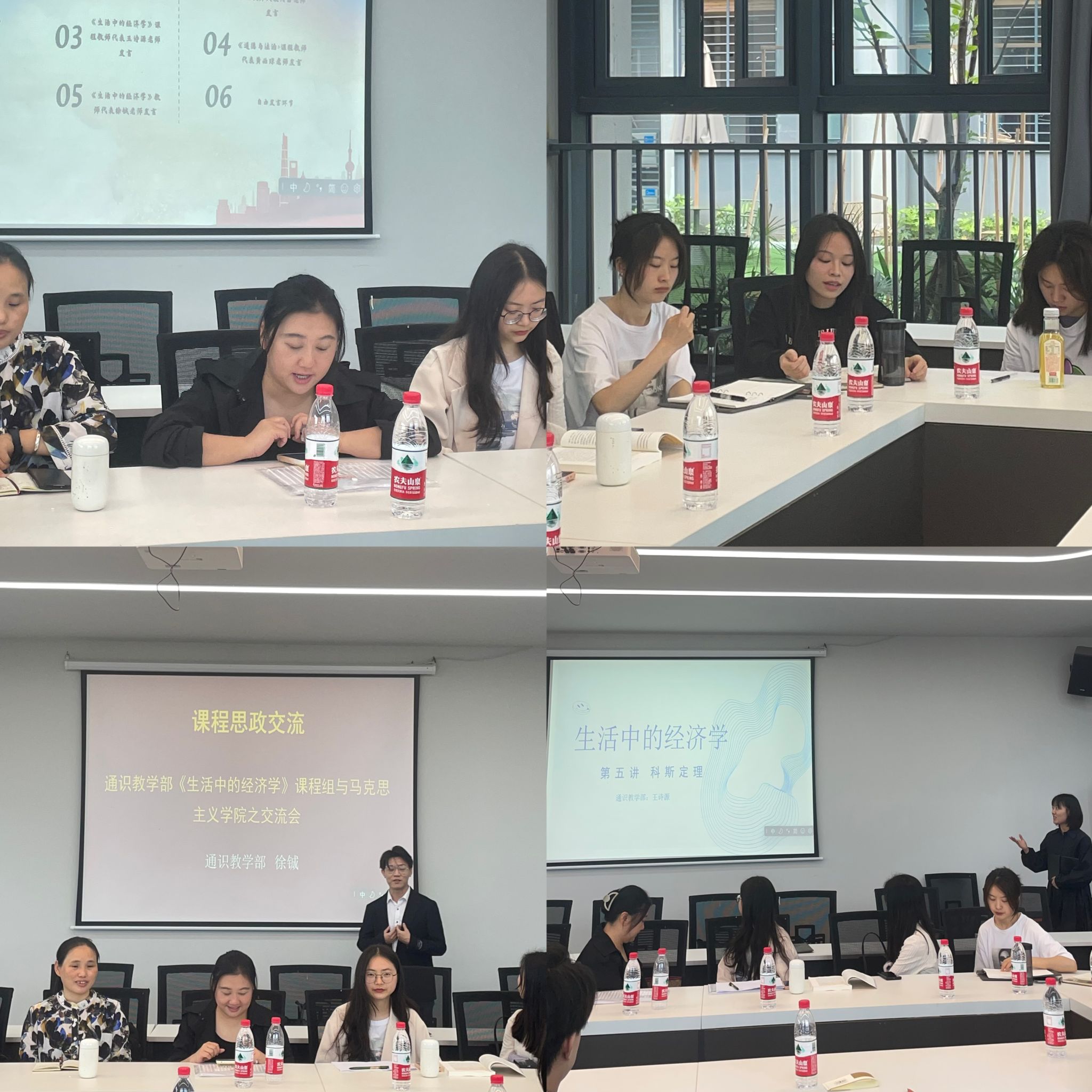 随后,双方教师代表进行了交流发言。何苗老师提出,在《生活中的经济学》课程中,可以将马克思主义经济学思想有效融入课程,实现价值性和知识性有效统一。黄必琼老师认为,“课程建设要以学生为中心,强化教学设计,比如讲授人生价值时可以融入通识学科的拍卖概念,创设价值拍卖小游戏,寓教于乐,提升学生学习体验,使课程更加贴近学生的需求”。接着,通识教学部徐铖老师就《生活中的经济学》课程,围绕课程思政境况、课程思政方法、课程思政认识等方面进行了介绍,他认为:“要促进通识课程与思政课程融合创新,教师需要进一步熟悉本科思政教育体系,系统构建基础扎实、特色鲜明的大思政通识教育体系,形成协同效应。”王诗源老师则分享了课程思政建设和课程教学经验,她以“改革开放中的科斯定理”为题,从课程思政特点、内容、元素等方面进行展开介绍。