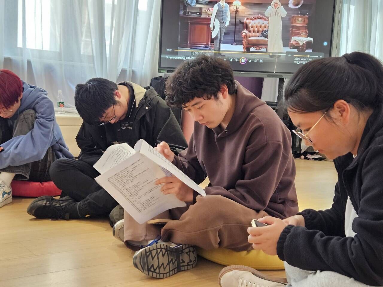 本次剧目自筹备之初便备受关注,同学们纷纷报名参与,积极投入到剧本研讨、撰写、排演等各个环节中。同学们围坐在一起,在网络上搜集了多个剧目、小品的视频,进行观看学习。观看结束后,同学们热情交流着,各自发表自己的意见,激烈讨论着剧情的走向与角色的设定。