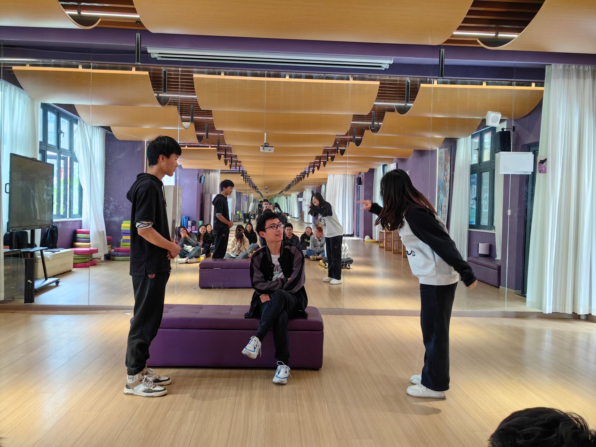 台上一分钟,台下十年功。台上功夫需要靠同学们在幕后付出格外多的时间去打磨。排演环节中,同学们有了更多思想的交流和令人惊喜的表现。起初大家都还略显拘谨,但在活动主持人的带动下都逐渐进入了状态,同学们用心演绎,展现着丰富的肢体语言,台词也逐渐抑扬顿挫起来。部分同学夸张滑稽的肢体动作使其他同学连连发笑,也打破了同学们之间来自不同学院、不同班级的壁垒。