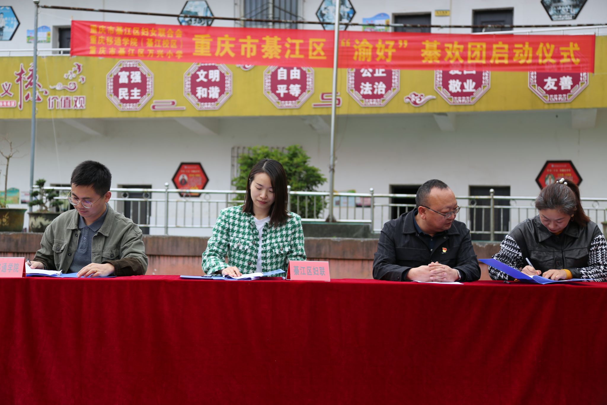 在启动仪式上,志愿者代表徐海莹与五年级的张覃晓进行了现场结对,标志着这项特别的帮扶活动正式拉开序幕。作为结对仪式的一部分,他们互相赠送了精心准备的礼物,这不仅代表了物质上的支持,更是彼此间深厚情感和友谊的传递。随后,綦江区妇联、万兴小学以及重庆移通学院三方代表正式签署了合作协议,标志着合作项目正式进入实施阶段。
